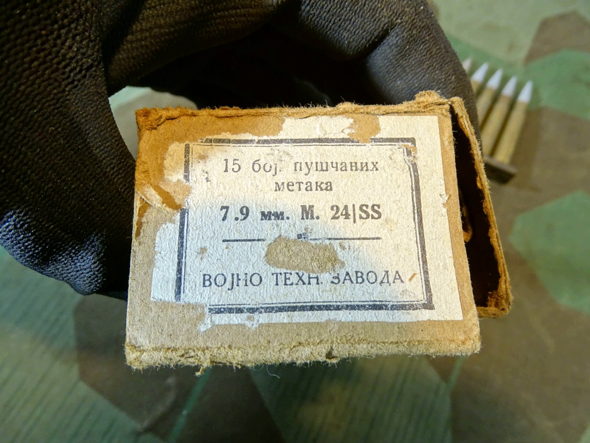 15 Deko Patronen 7,9mm M 24 SS, 1936/37/39, Originalschachtel, Yugoslavien- deutsche Beute