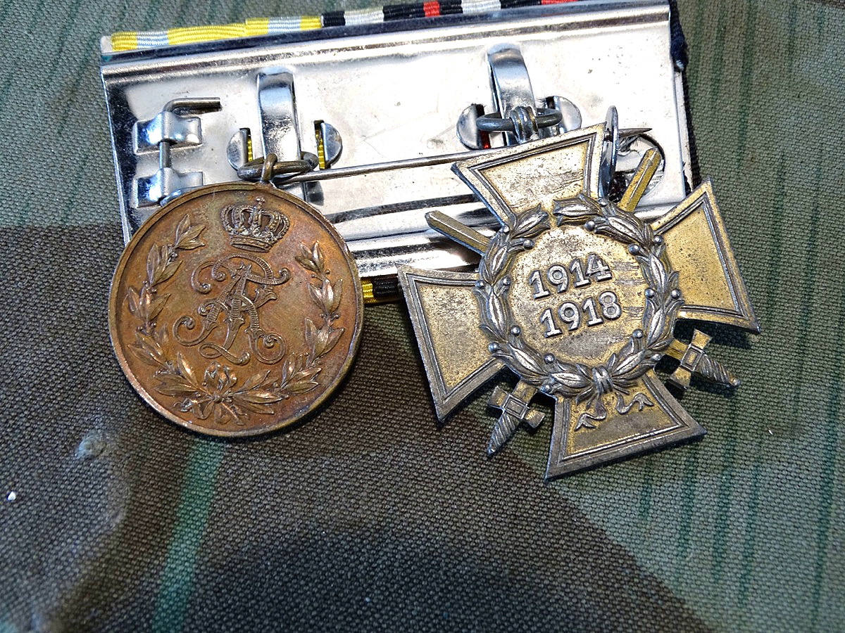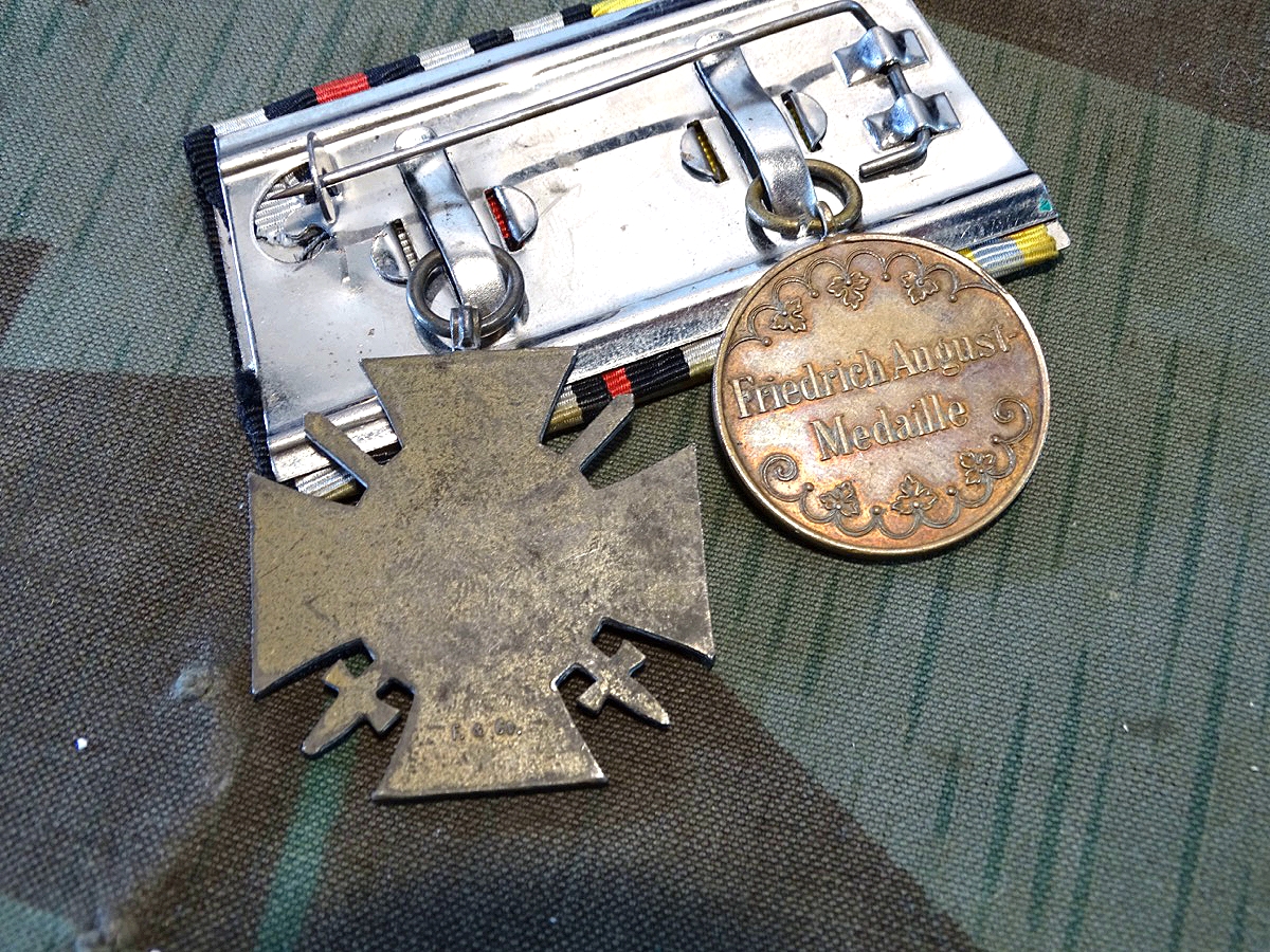 Produktinformationen "2er Ordensspange . Sachsen : Friedrich August Medaille und Ehrenkr. F. Frontkpf. in alter Schatulle"