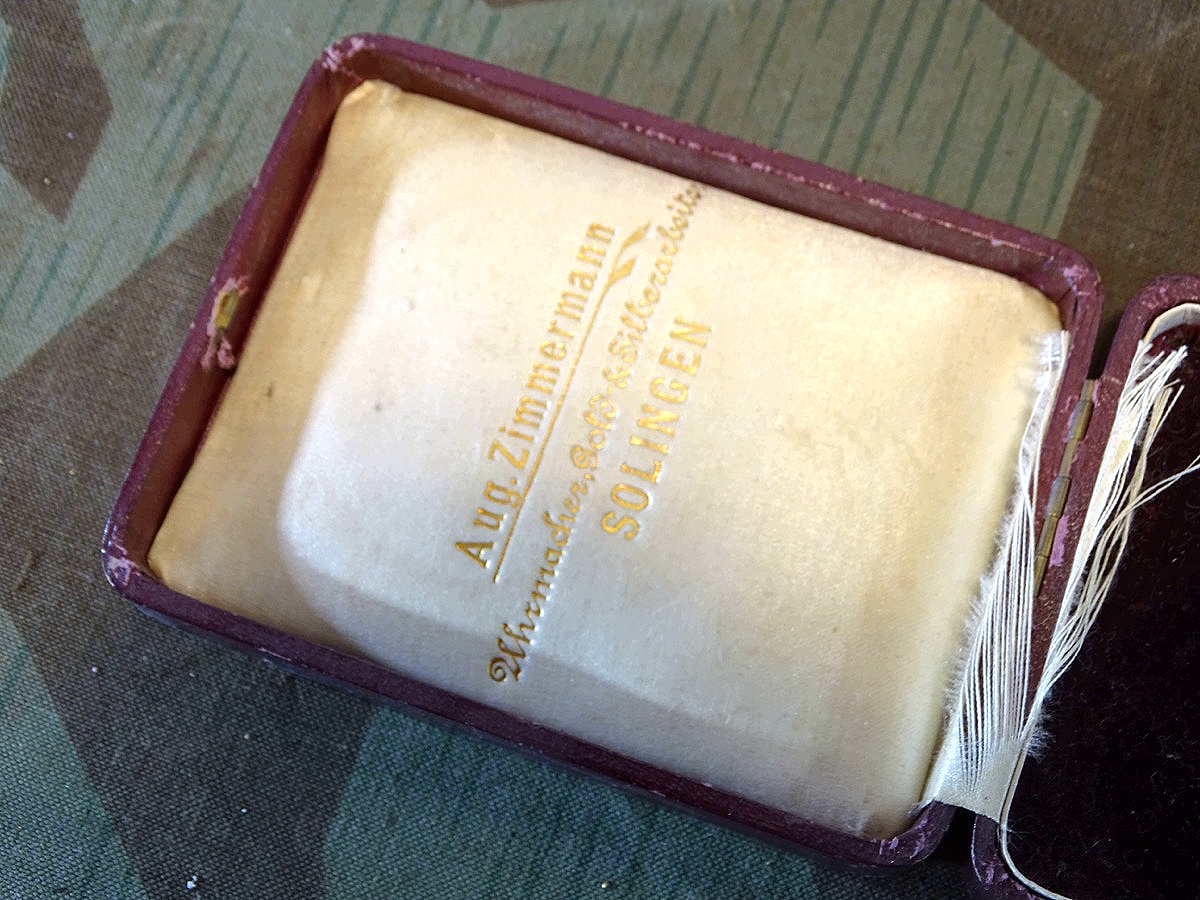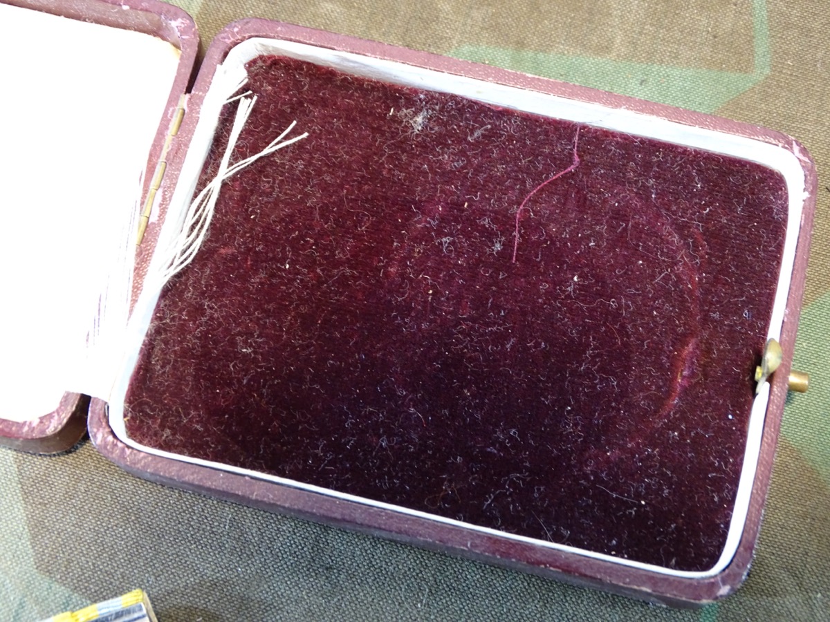 Sachsen : Friedrich August Medaille. Ehrenkreuz f. Frontkämpfer mit Schwertern 1914-18 , Hersteller : F& Co - Francke & Co Lüdenscheid. Dazu die alte Schmuck Aufbewahrungssschatulle eines Solinger Juweliers aus gleichem Nachlass. Unberührt, so direkt aus Trägernachlass von der Familie angekauft.