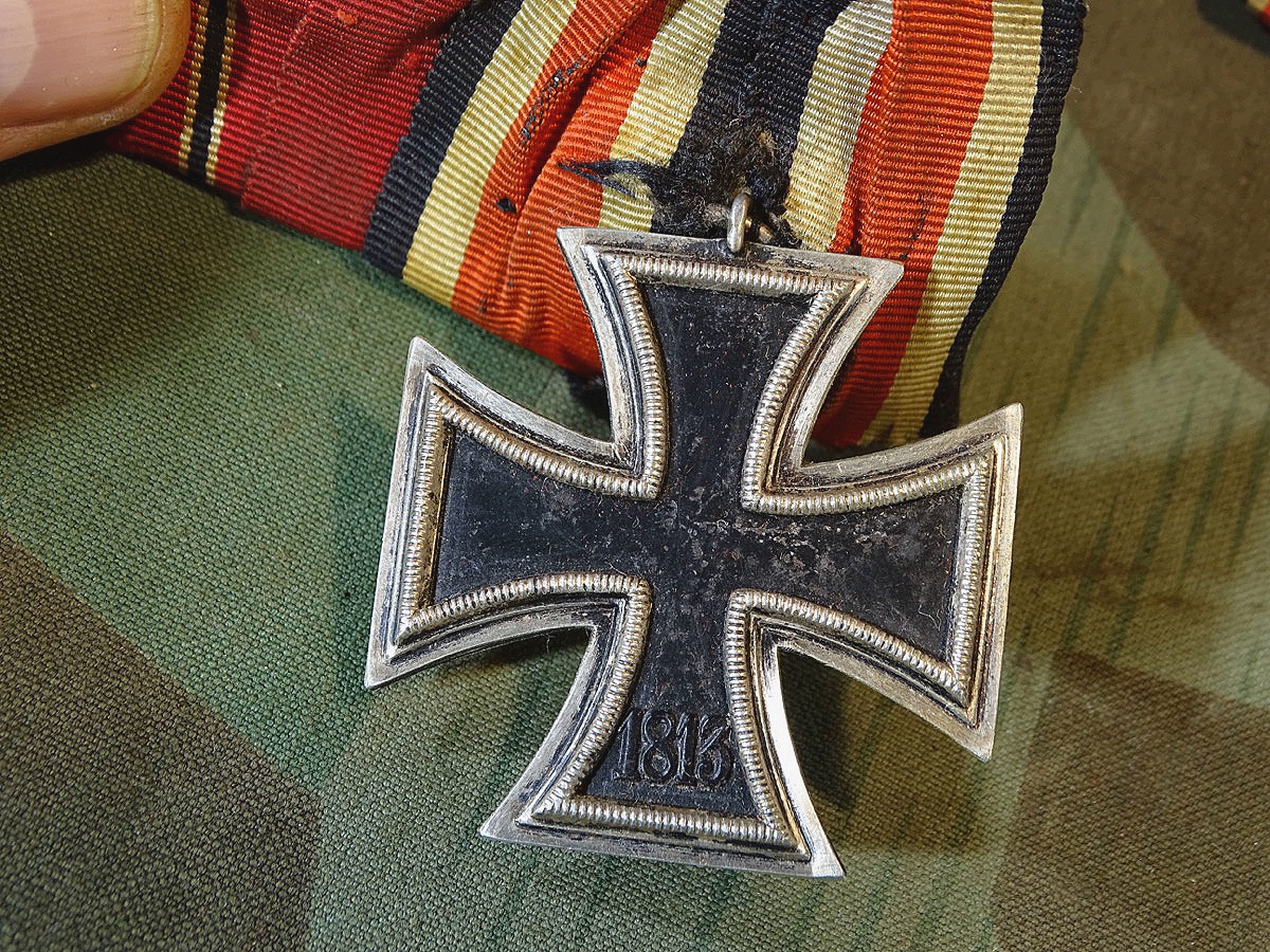 EK magnetisch. Kernfarbe größtenteils erhalten, siehe Fotos. An HK fast kpl. erhalten, nur ein winziger Farb Abrieb, vielleicht 1 %. Antrazitgraue Mittelteil Farbe der Ostmedaille gut erhalten, Rand angelaufen. Wir konnten keinen Hersteller auf den Ringen sehen, die Ringe allerdings auch nicht komplett drehen um alles anzusehen.