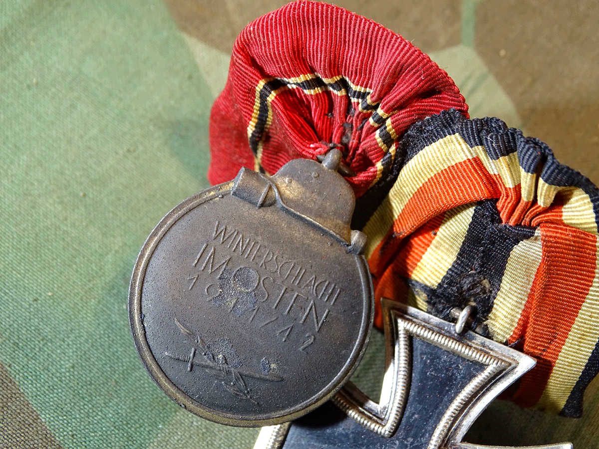 Produktinformationen "2er Ordensspange EK 2 1939 , Ostmedaille und 2 passende Bandschnallen dazu, getragen"