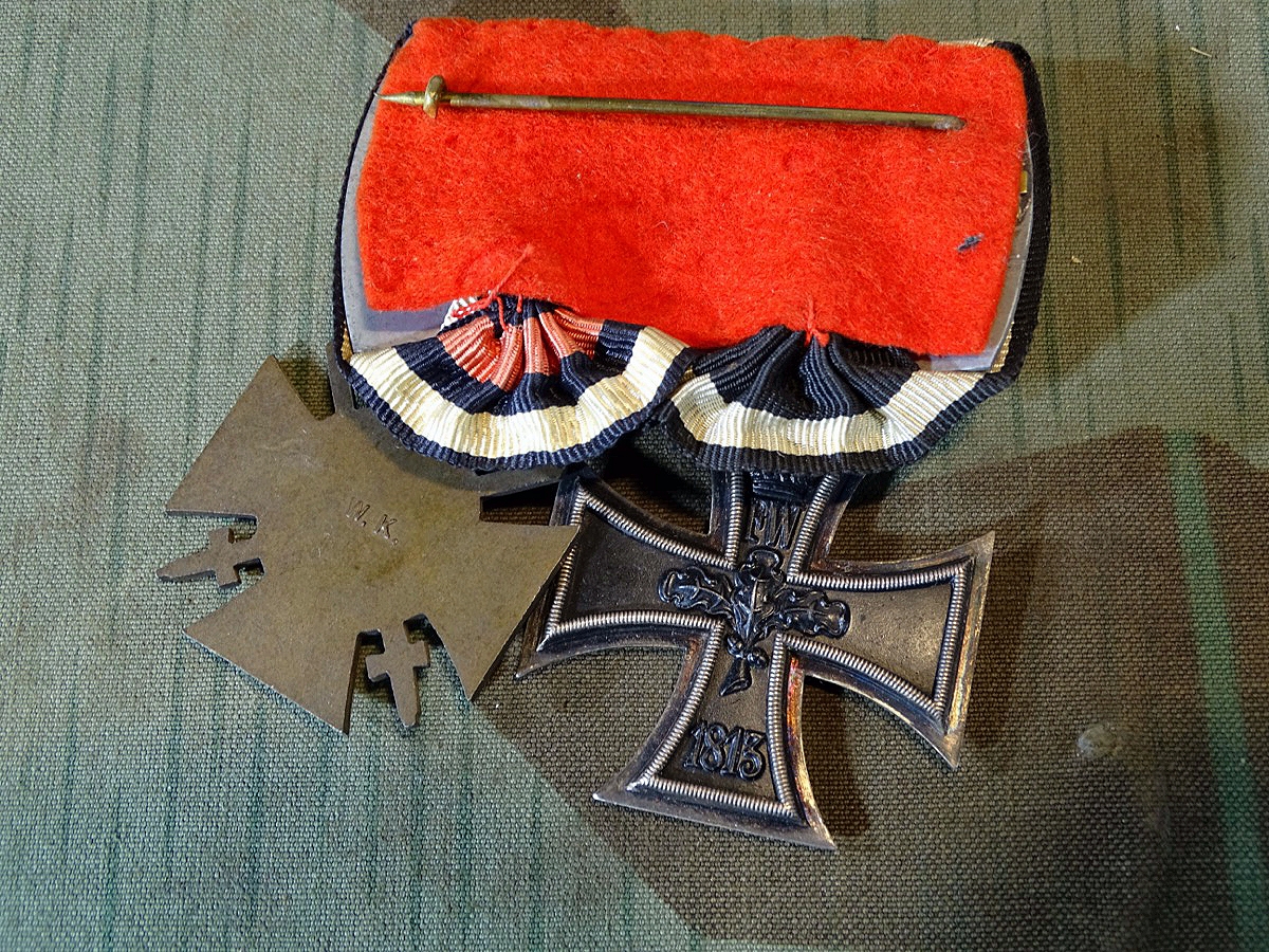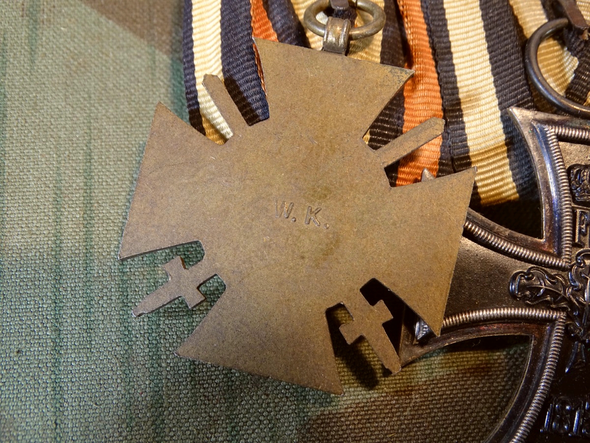 Produktinformationen "2er Ordensspange: Eisernes Kreuz 2. Klasse 1914- Hst.: Z , Ehrenkreuz f. Frontkämpfer u Bandspange in altem Etui."