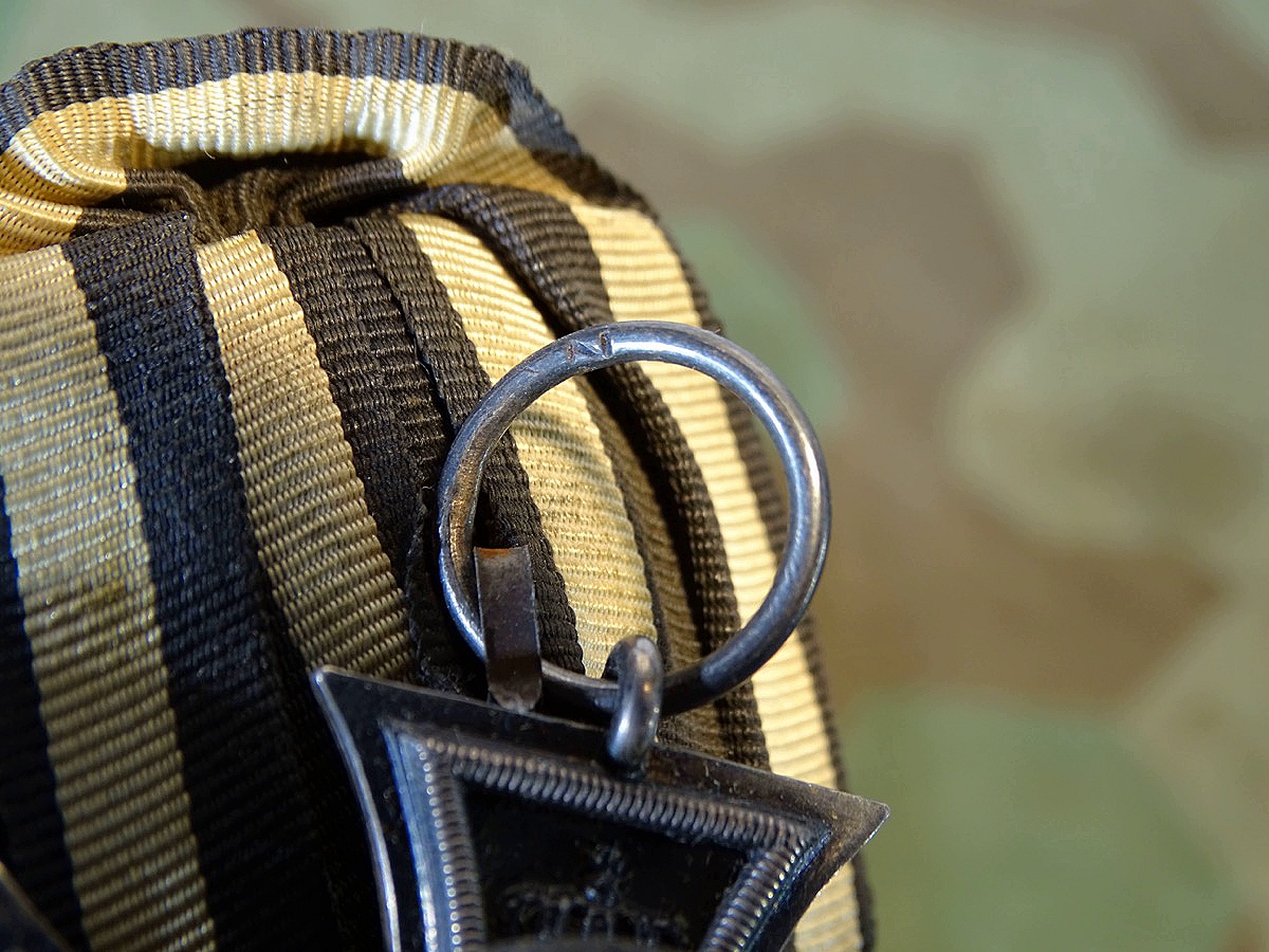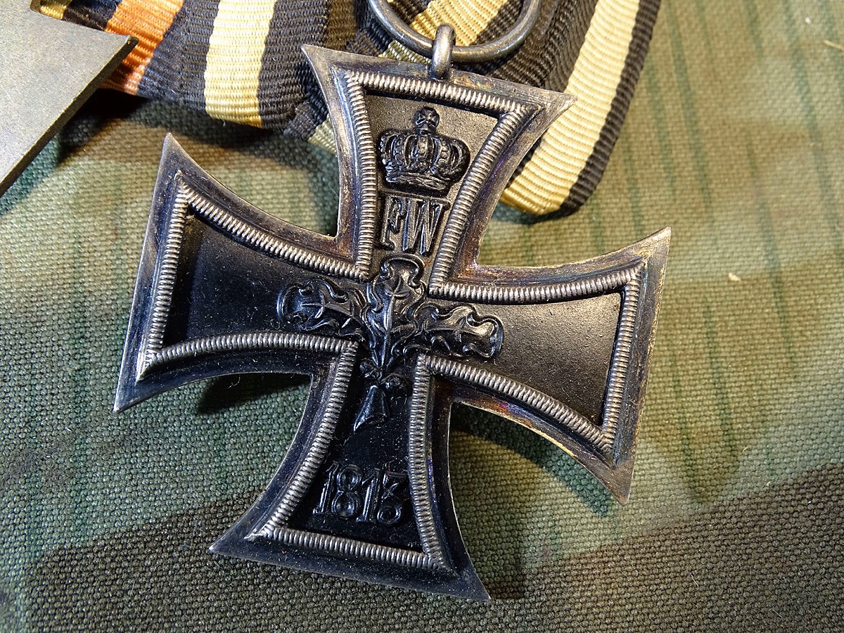 Spange auf Rückseite mit rotem Filz hinterlegt. Kernfarbe des EK 2 fast kpl. erhalten. Magnetisch. Der Rahmen mit feiner, gleichmässiger Patina. Mit Hersteller "Z" für die Firma H.Zehn. So abgebildet auf S. 223, Frank Wernitz: Das Eiserne Kreuz 1813-1870-1914. Ehrenkreuz f. Frontkämpfer gut erhalten, mittiger Herstellerstempel : W.K. Hersteller: Wilhelm Kolwitz Bergedorf. Magnetisch. Anbei eine Bandspange mit beiden Auszeichnungen aus gleichem Nachlass , in gleicher Erhaltung. Anbei das alte Schmuckkästchen eines Juweliers, in dem der Träger die Stücke aufbewahrt hatte. Haben wir so zusamen angekauft. Zustand siehe Foto.