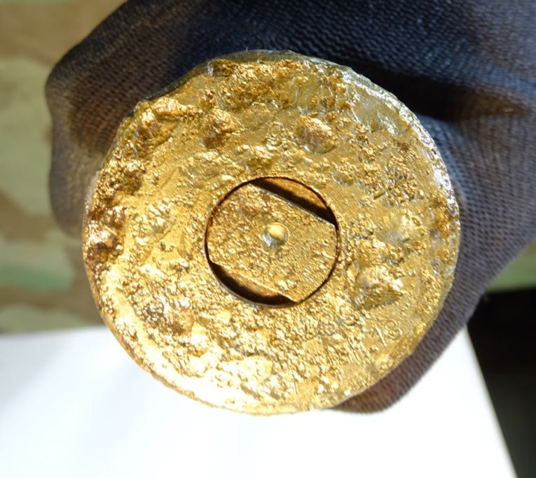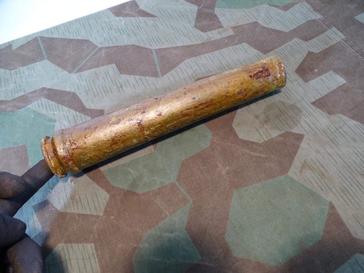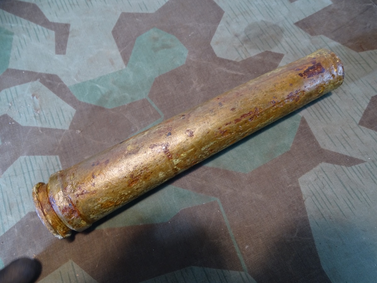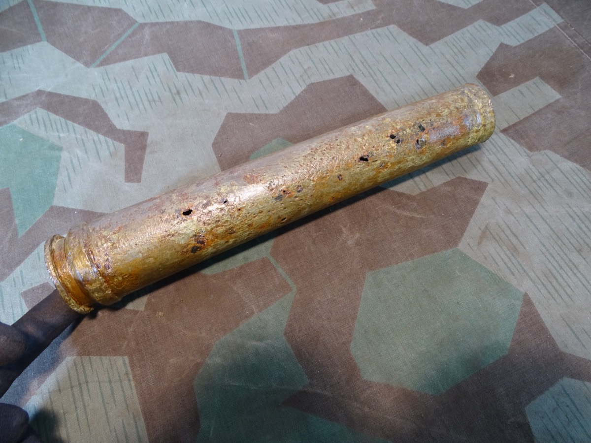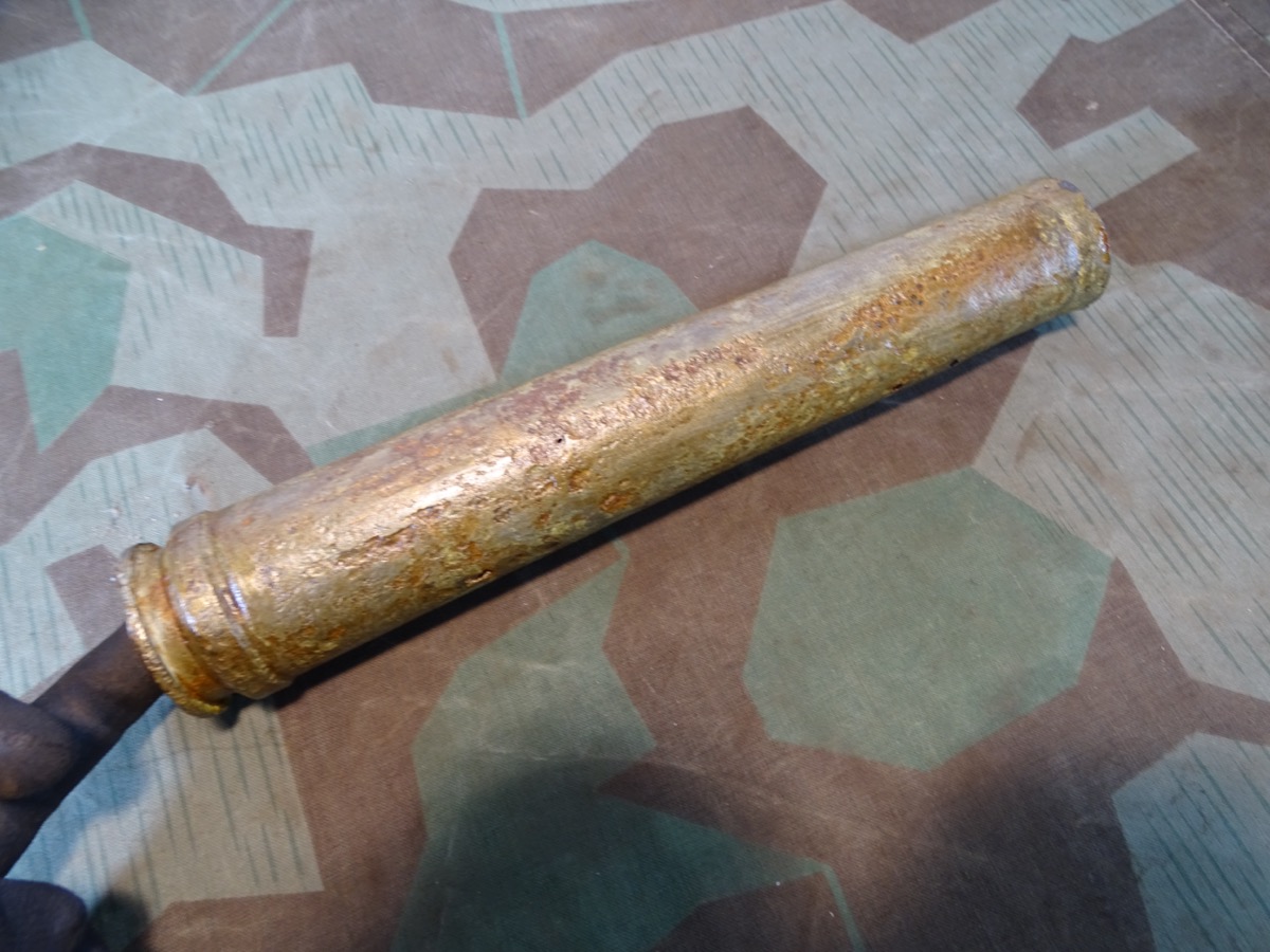 früher Aluzünder. Narbig aber Beschriftung des Zünders außen noch größtenteils lesbar. Z Zerl. WaA Stempel