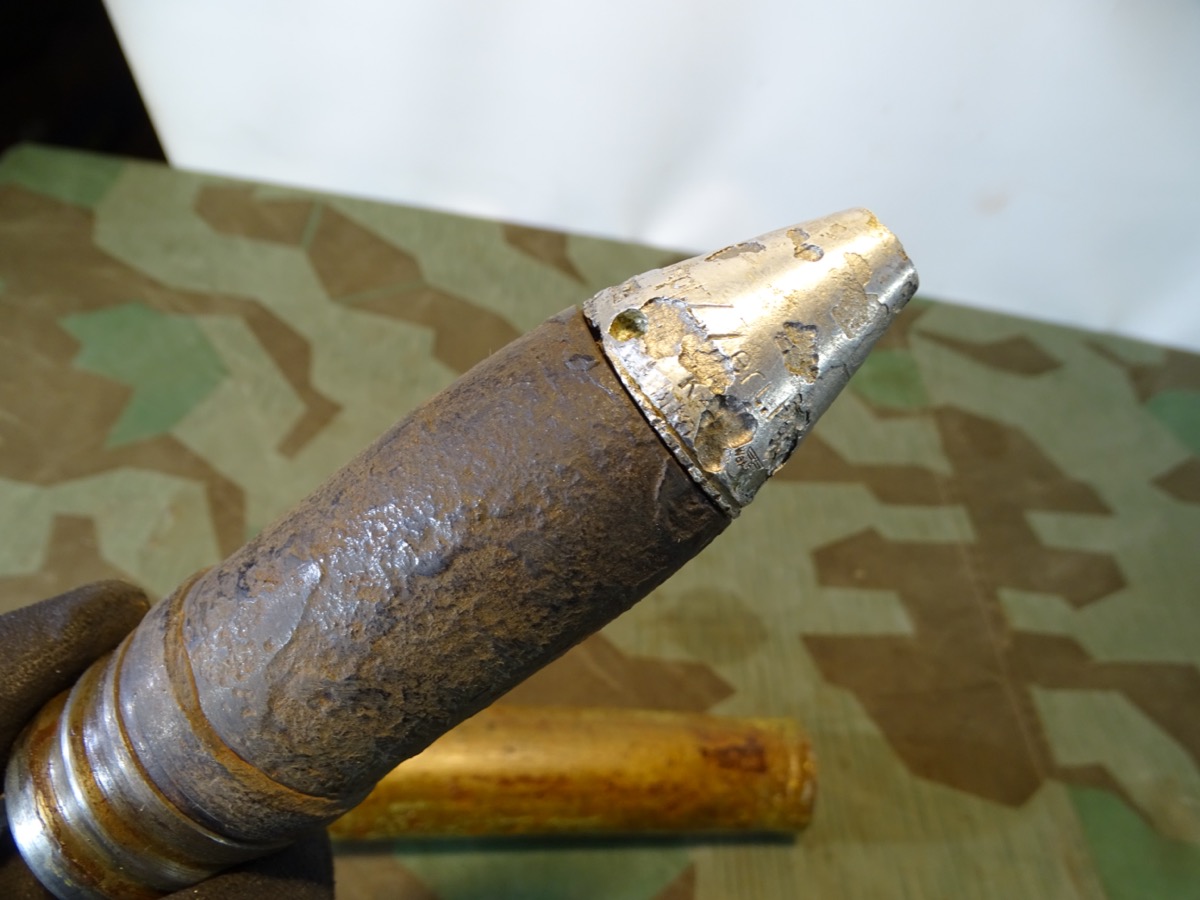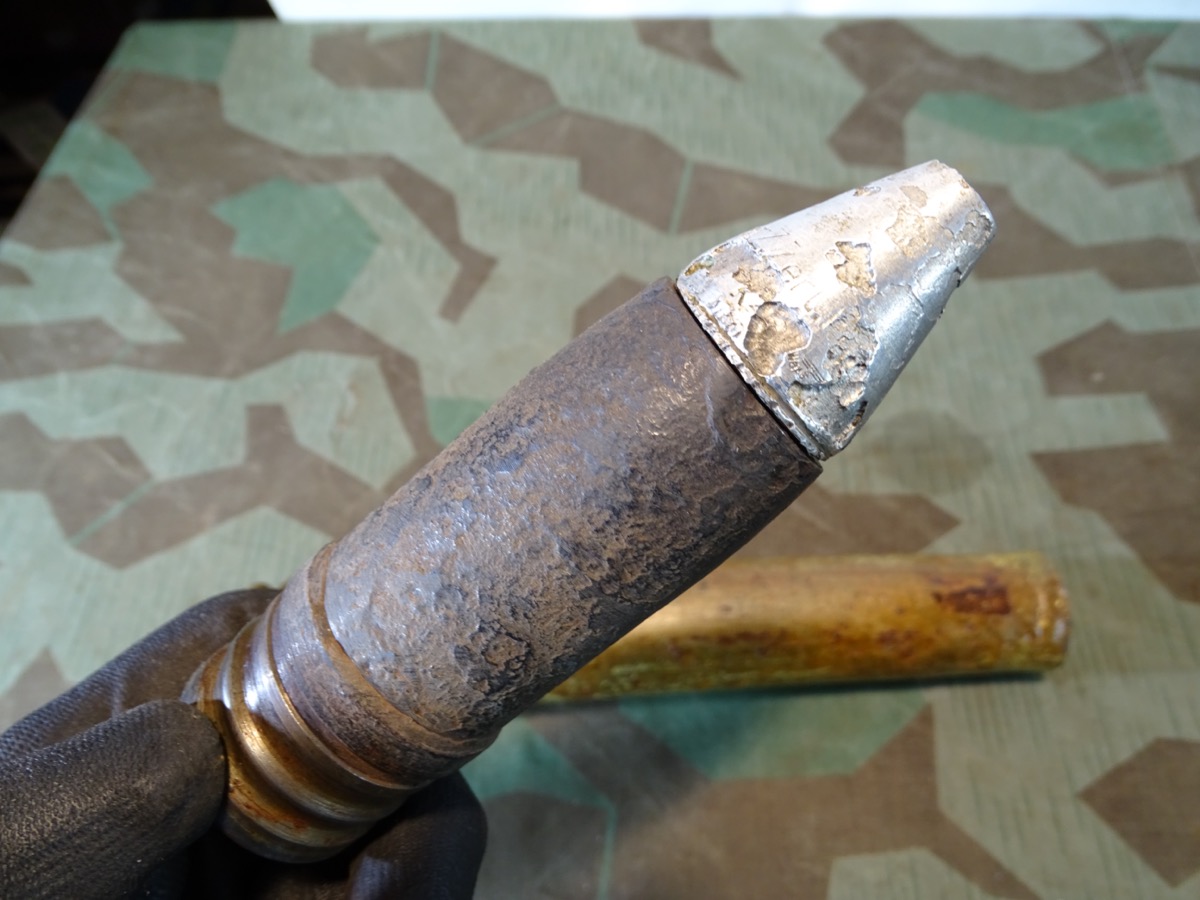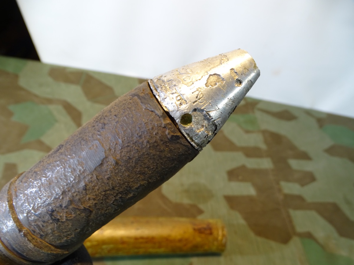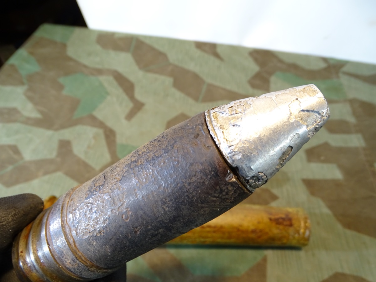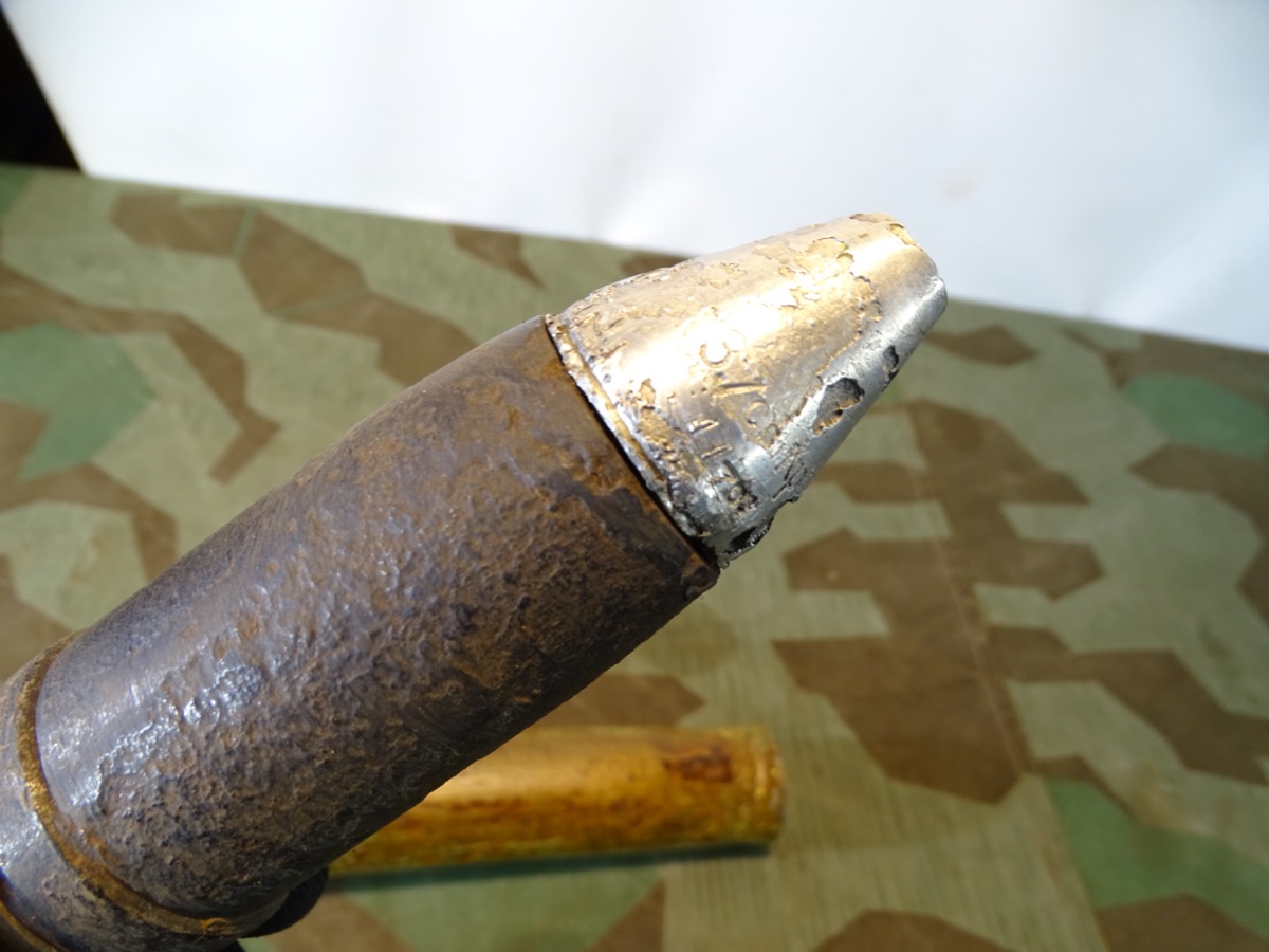NO SHIPPING TO FOREIGN COUNTRYS, KEIN VERSAND INS AUSLAND. Geschoss mit Leuchtspurhülse noch ganz gut erhalten, narbig aber reste von Schlagbuchstaben sichbar. Gewinde beide gut gängig.