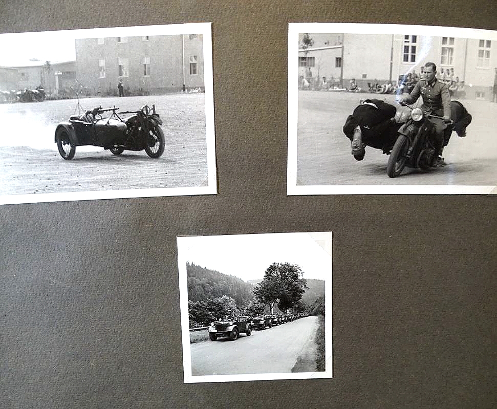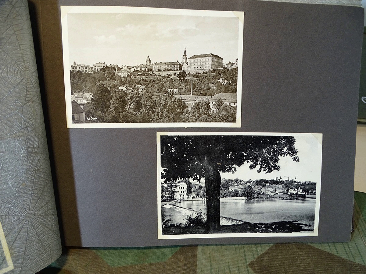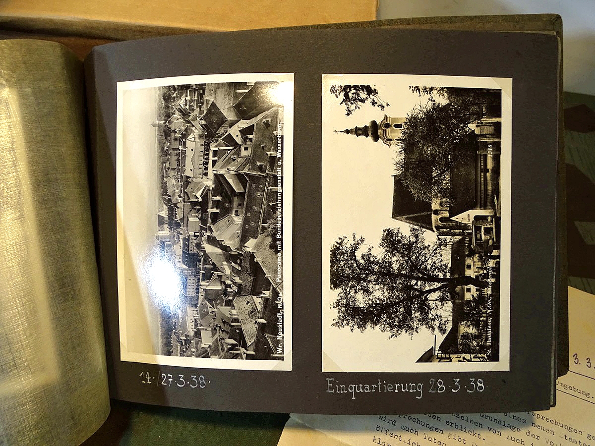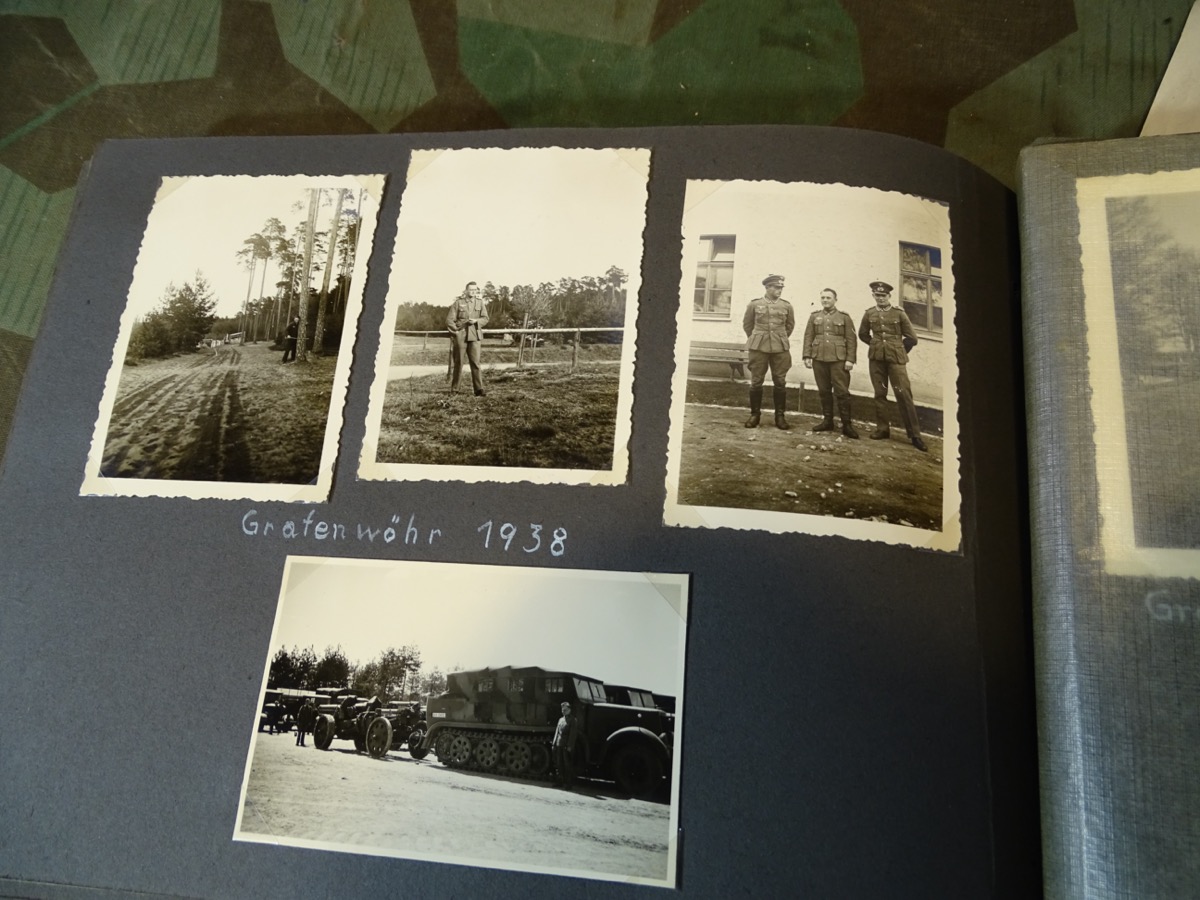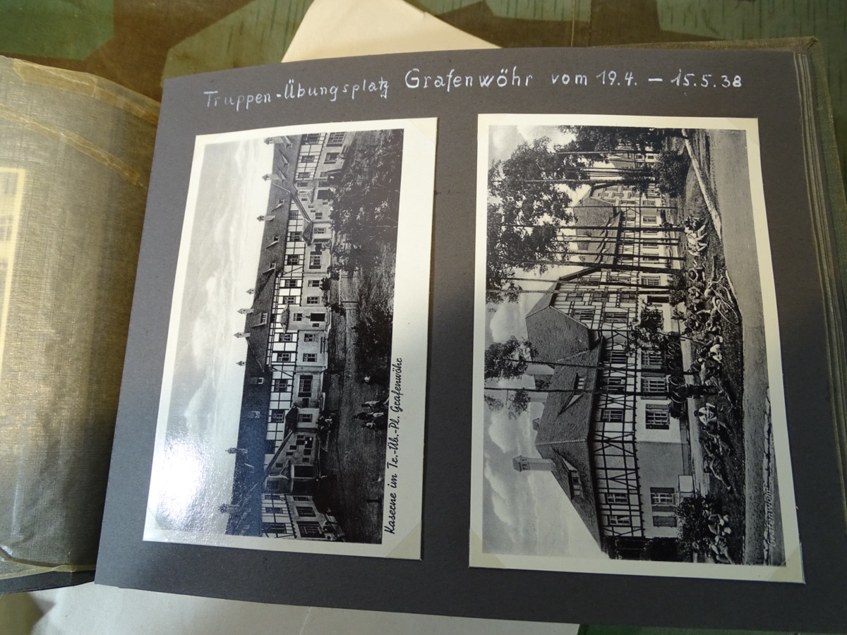 3. Album in braun, Coburg 1938, ca. 130 Fotos, Grafenwöhr 1938, 2 Feldzug Sept.- Okt. 38 , Sudetenland, viele postkartengroße Bilder, Viele Fotos mit sichtbarer Schulterkalppe mit MG, mehrere Zeitungsauschnitte dazu. Feldzug März / April 1939, Böhmen, Mähren, Prag. Tabor, Ilgau ,