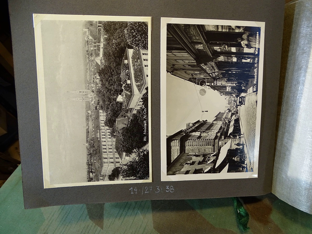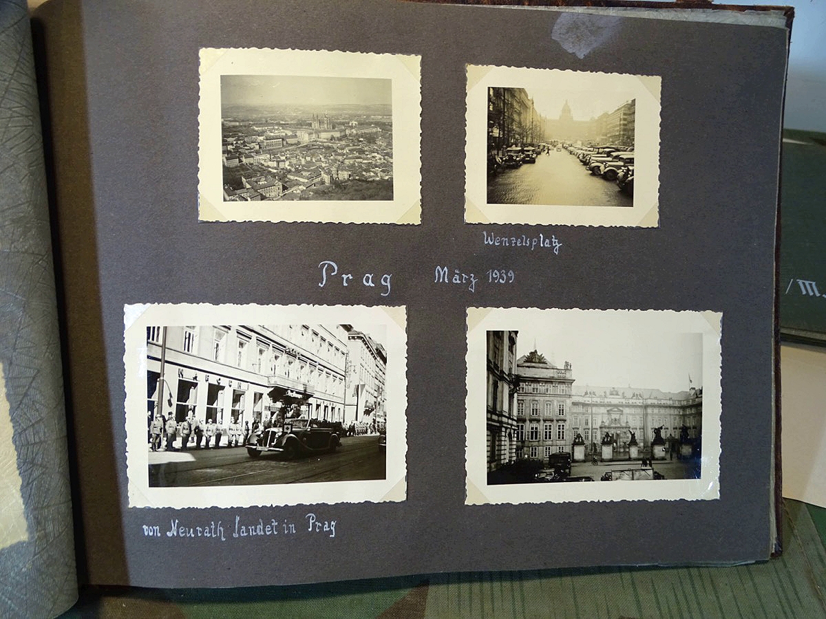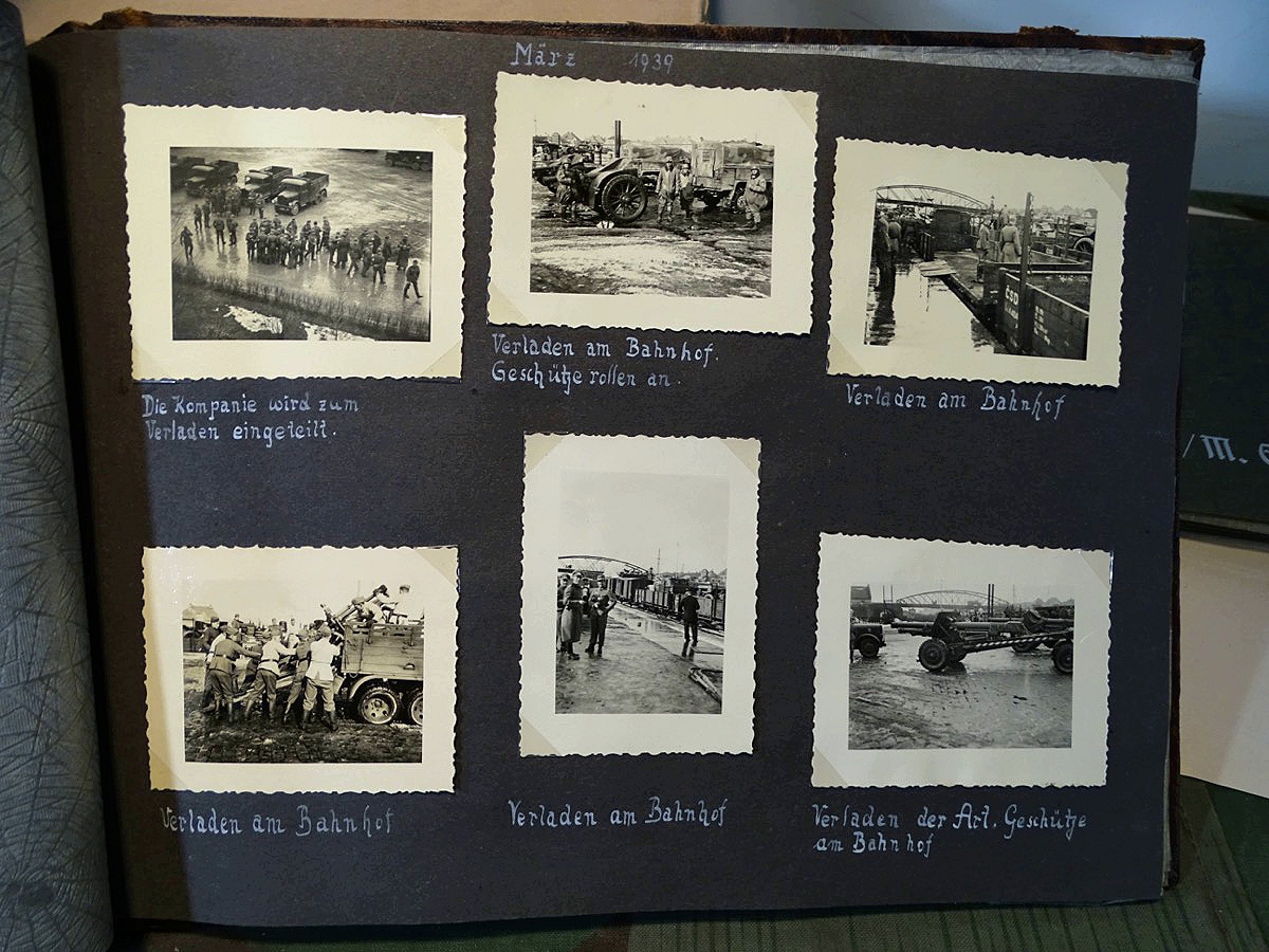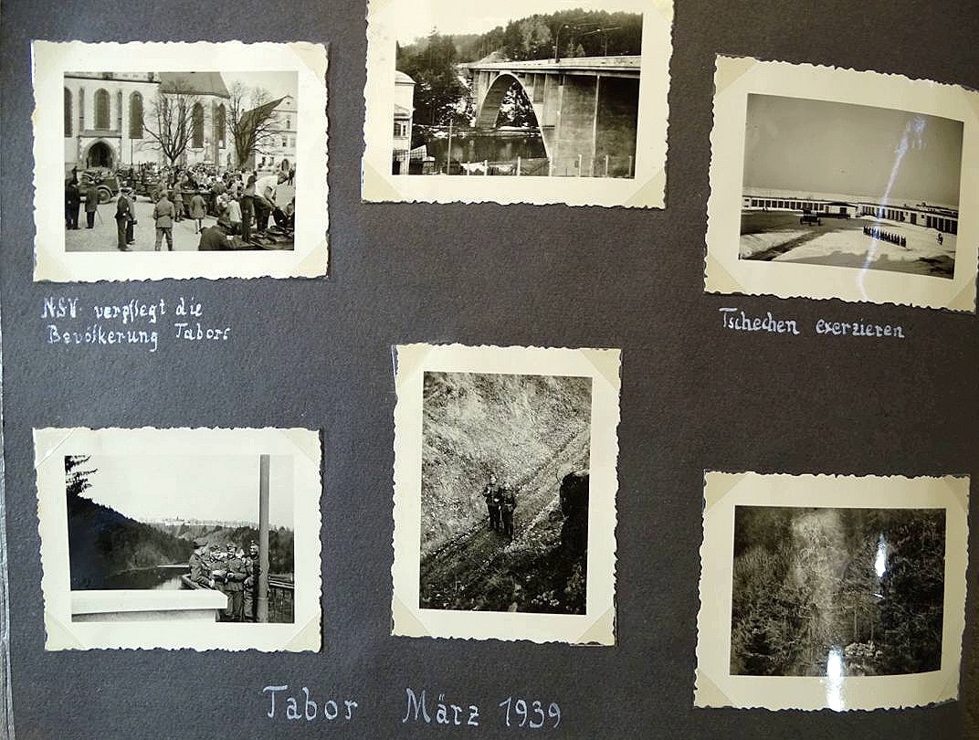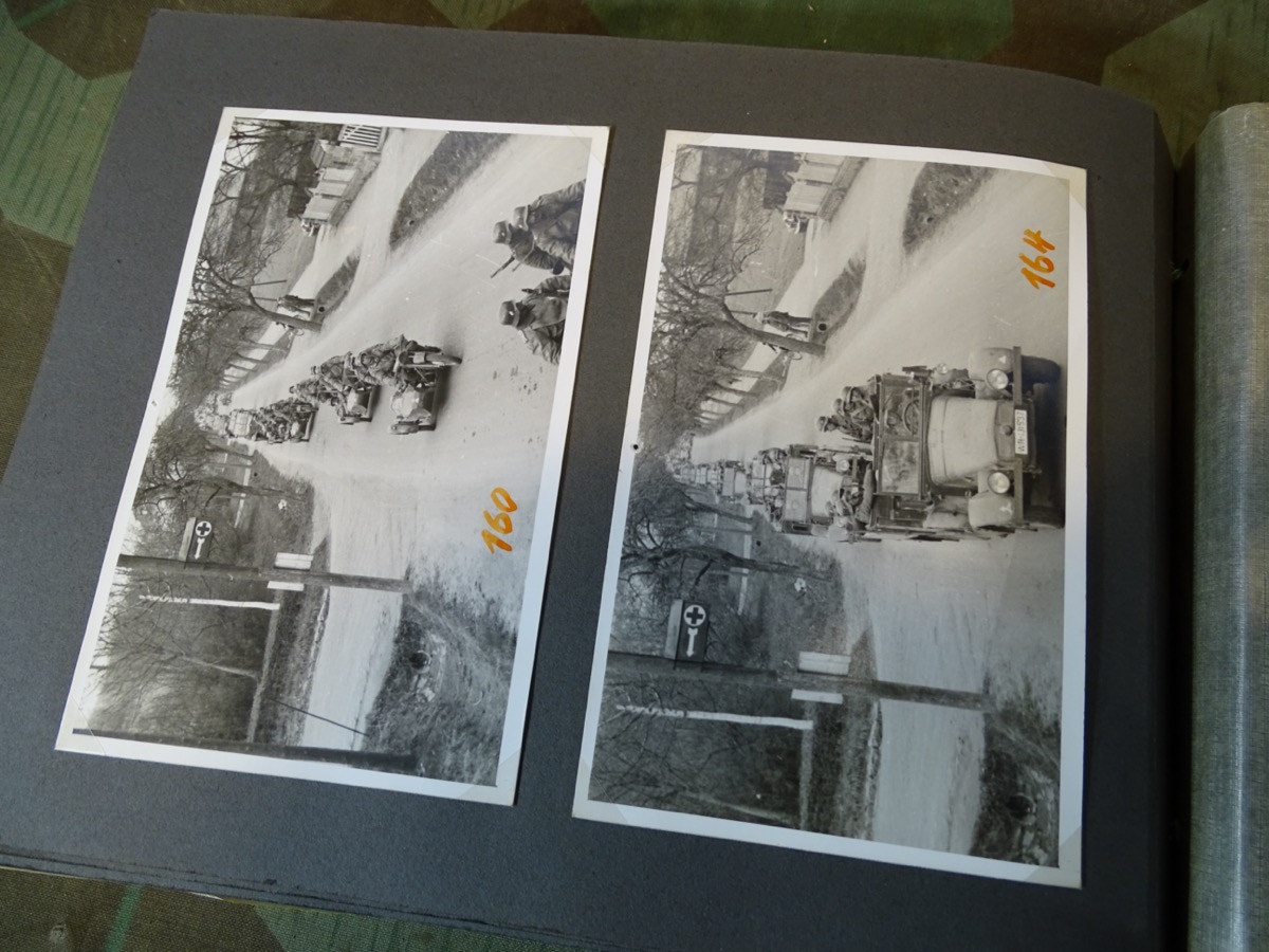 3. Album in braun, Coburg 1938, ca. 130 Fotos, Grafenwöhr 1938, 2 Feldzug Sept.- Okt. 38 , Sudetenland, viele postkartengroße Bilder, Viele Fotos mit sichtbarer Schulterkalppe mit MG, mehrere Zeitungsauschnitte dazu. Feldzug März / April 1939, Böhmen, Mähren, Prag. Tabor, Ilgau ,