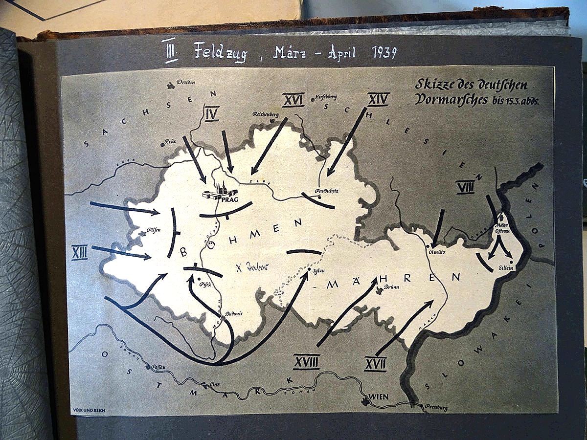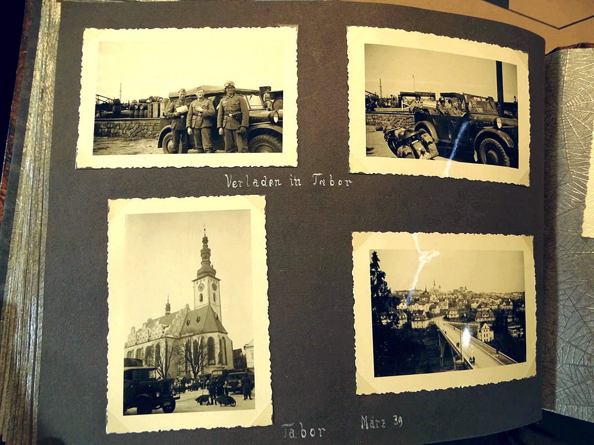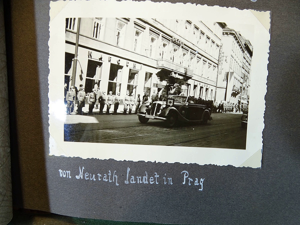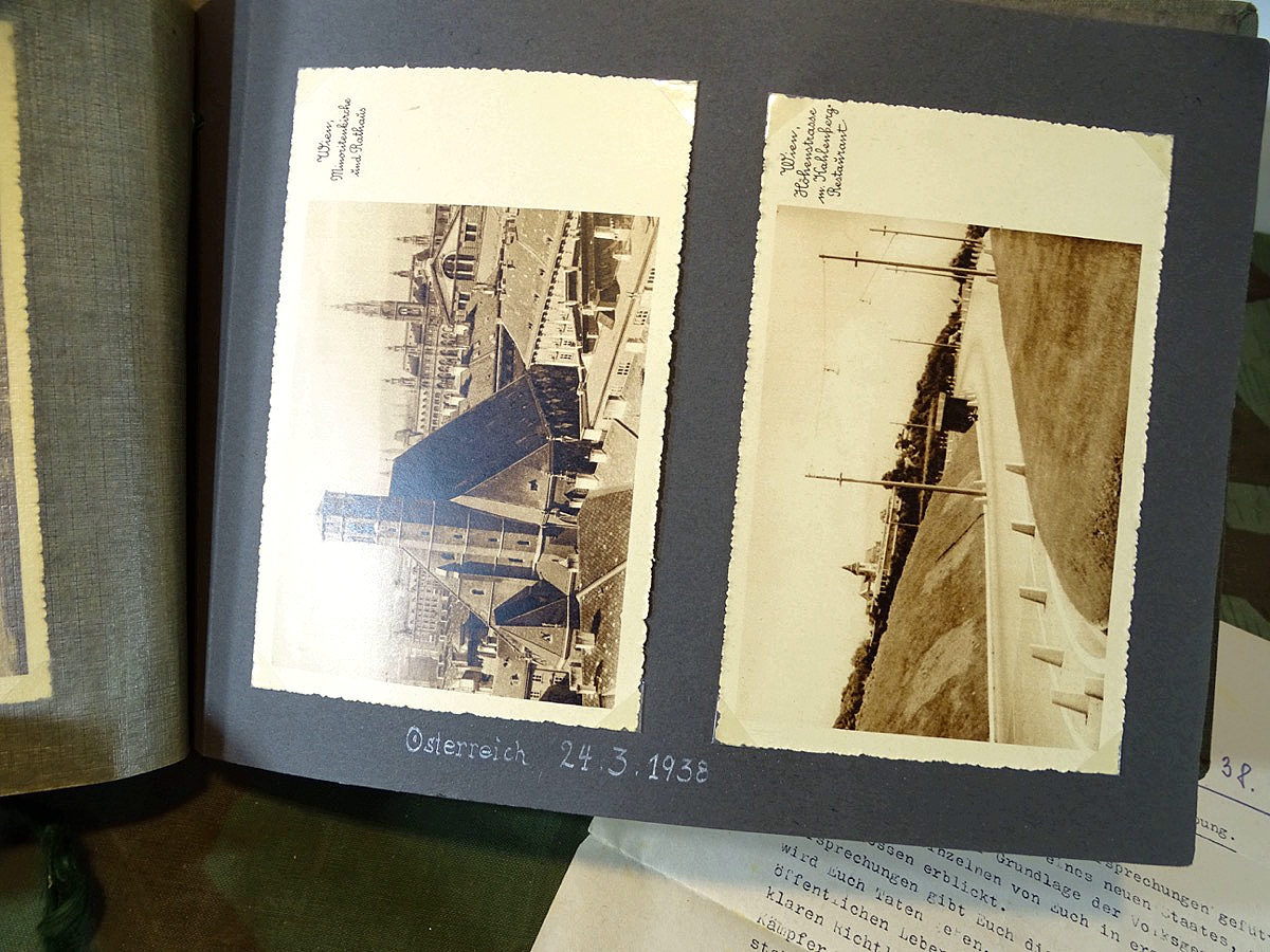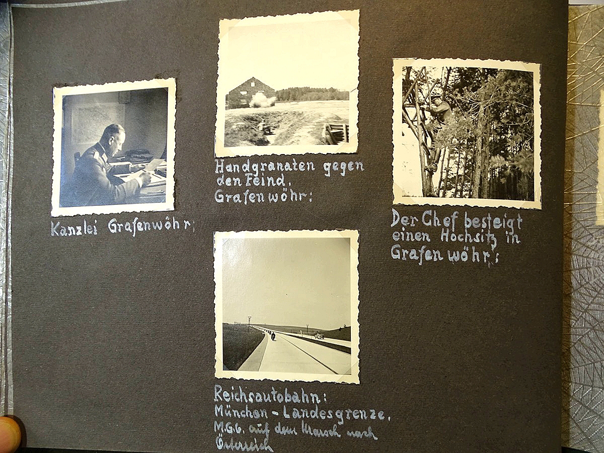 3. Album in braun, Coburg 1938, ca. 130 Fotos, Grafenwöhr 1938, 2 Feldzug Sept.- Okt. 38 , Sudetenland, viele postkartengroße Bilder, Viele Fotos mit sichtbarer Schulterkalppe mit MG, mehrere Zeitungsauschnitte dazu. Feldzug März / April 1939, Böhmen, Mähren, Prag. Tabor, Ilgau ,