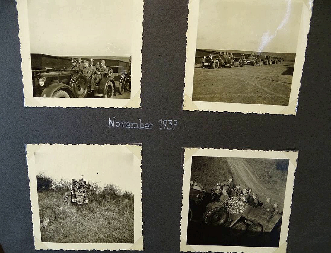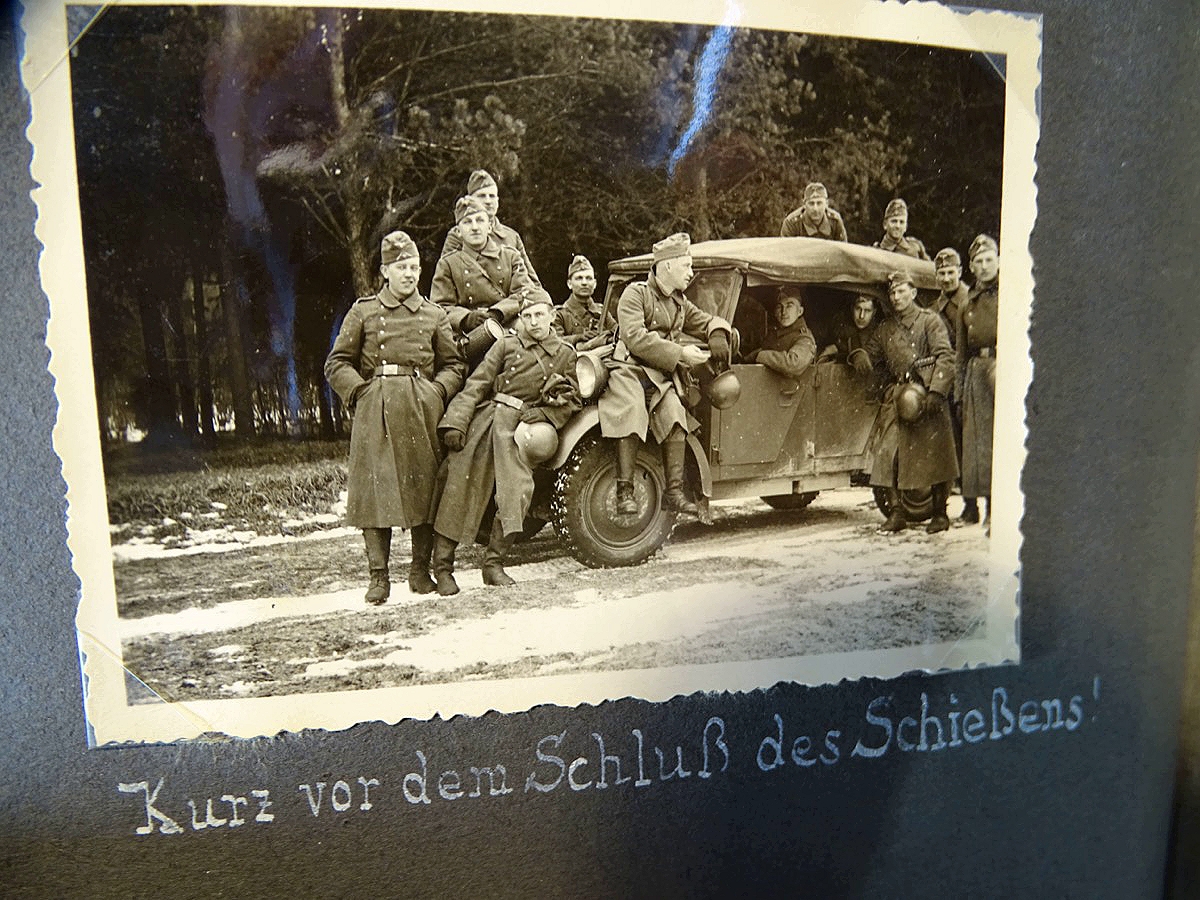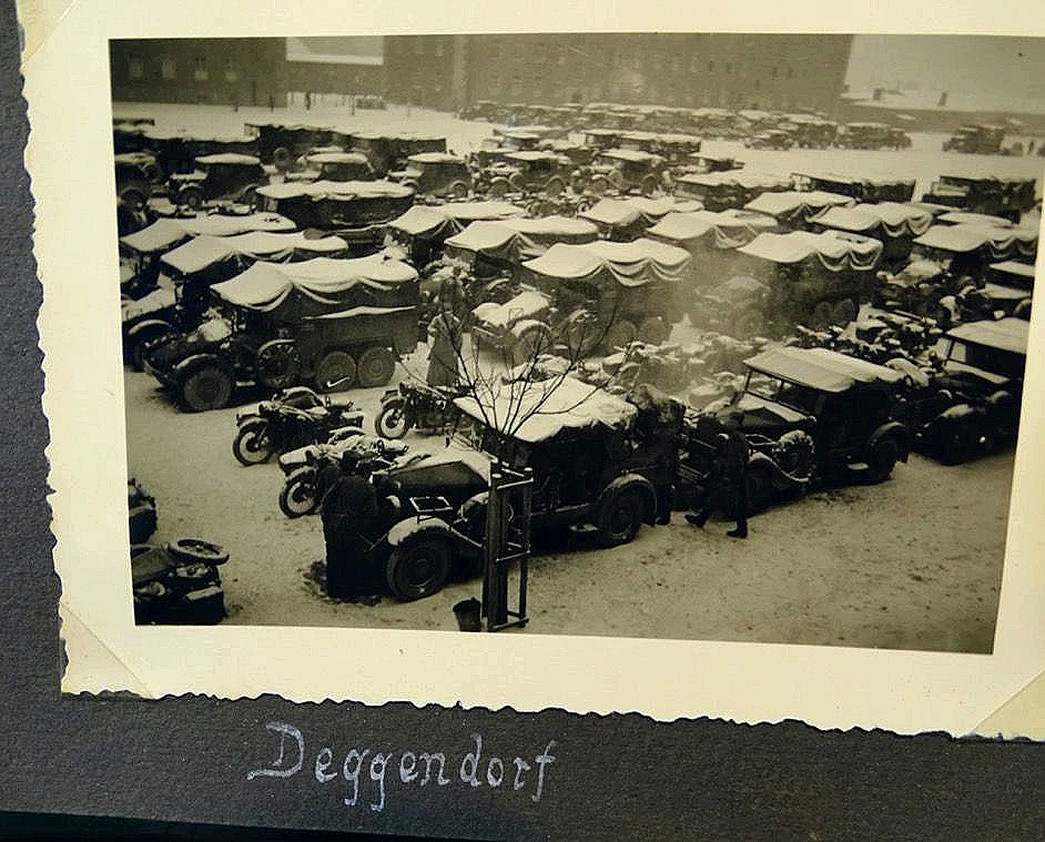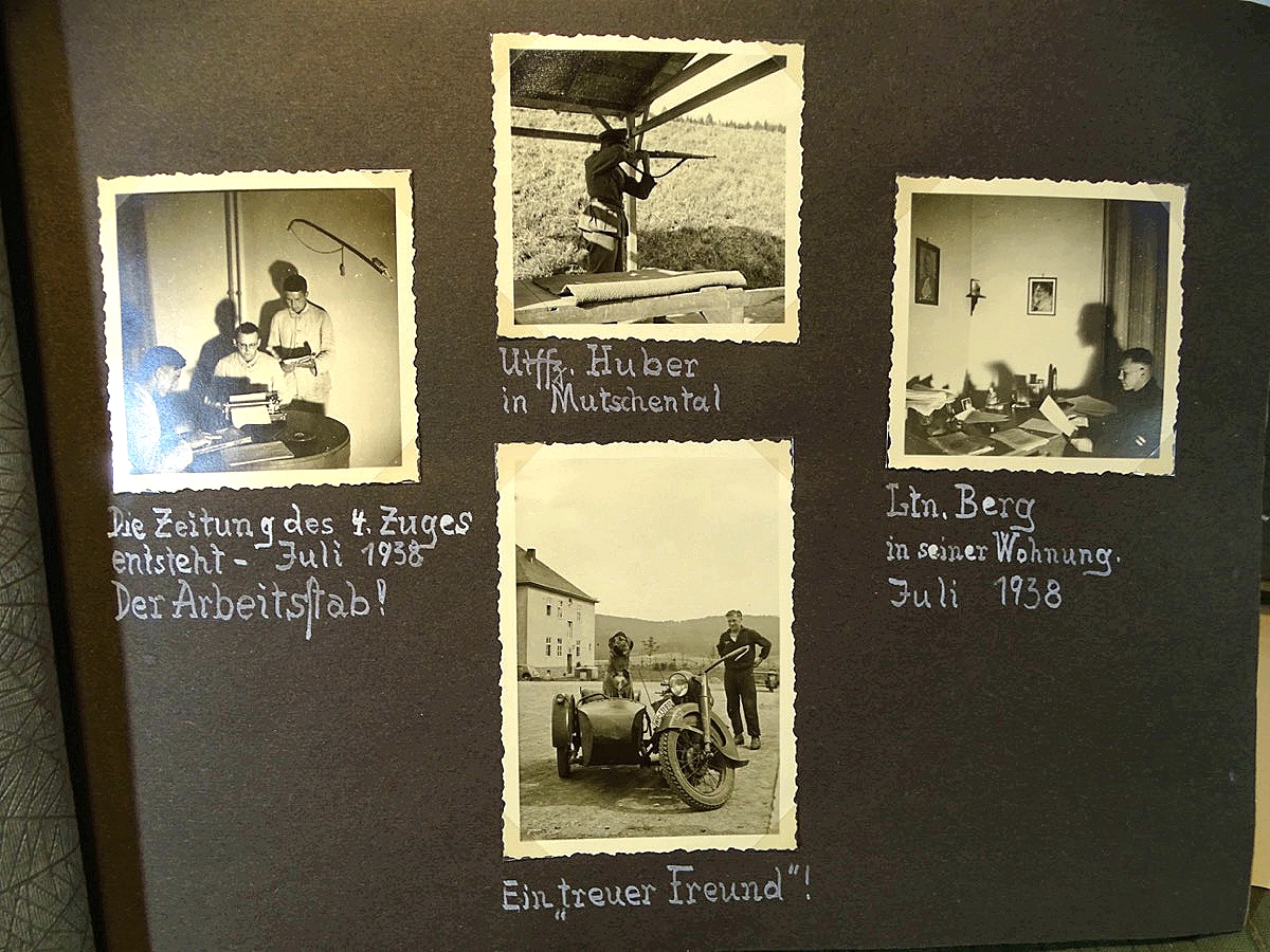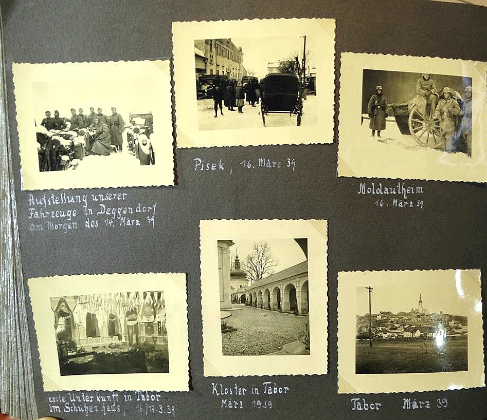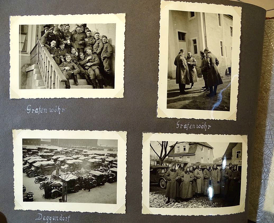 3. Album in braun, Coburg 1938, ca. 130 Fotos, Grafenwöhr 1938, 2 Feldzug Sept.- Okt. 38 , Sudetenland, viele postkartengroße Bilder, Viele Fotos mit sichtbarer Schulterkalppe mit MG, mehrere Zeitungsauschnitte dazu. Feldzug März / April 1939, Böhmen, Mähren, Prag. Tabor, Ilgau ,