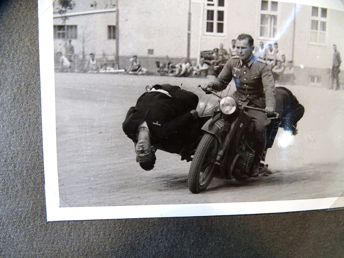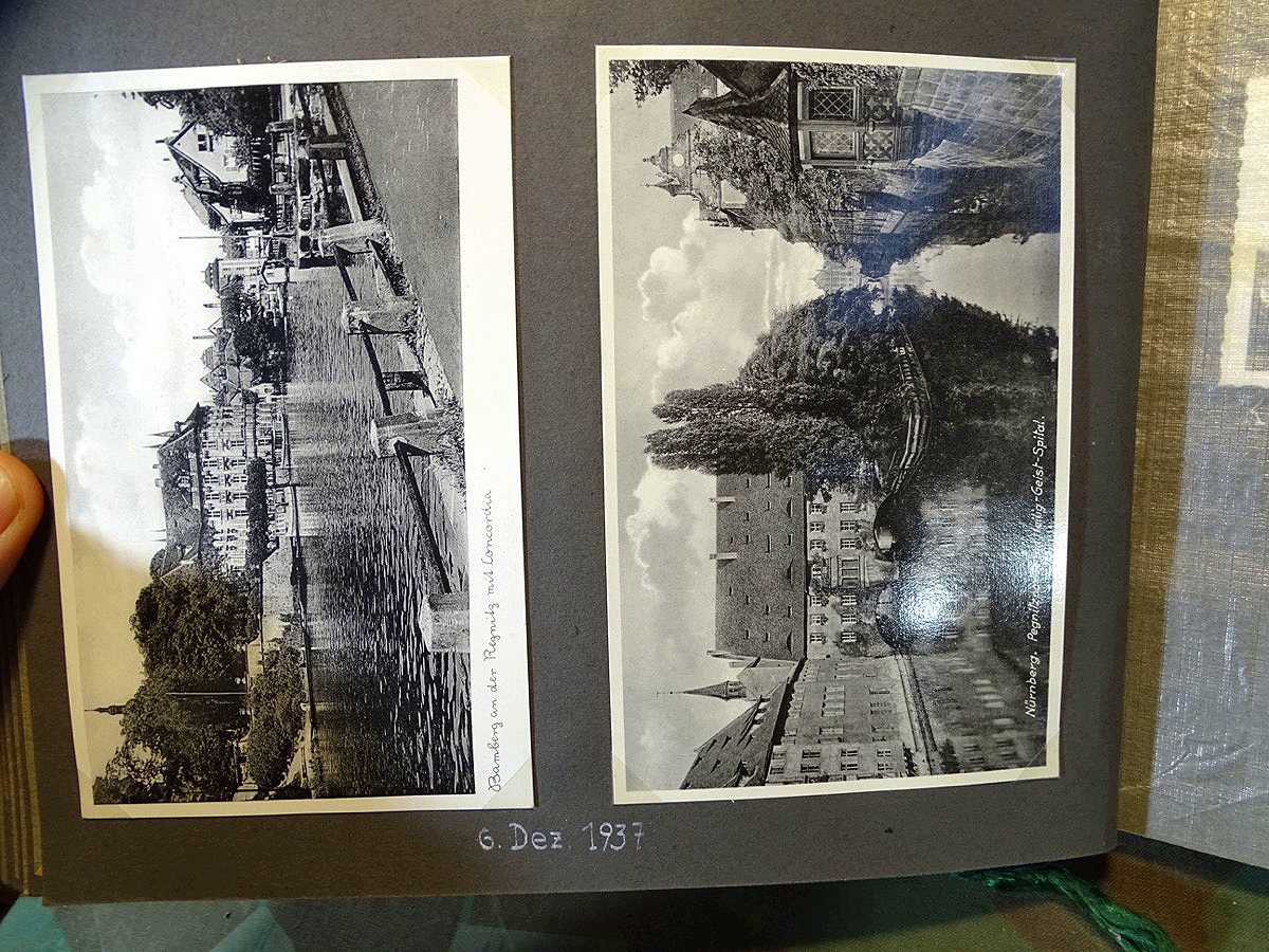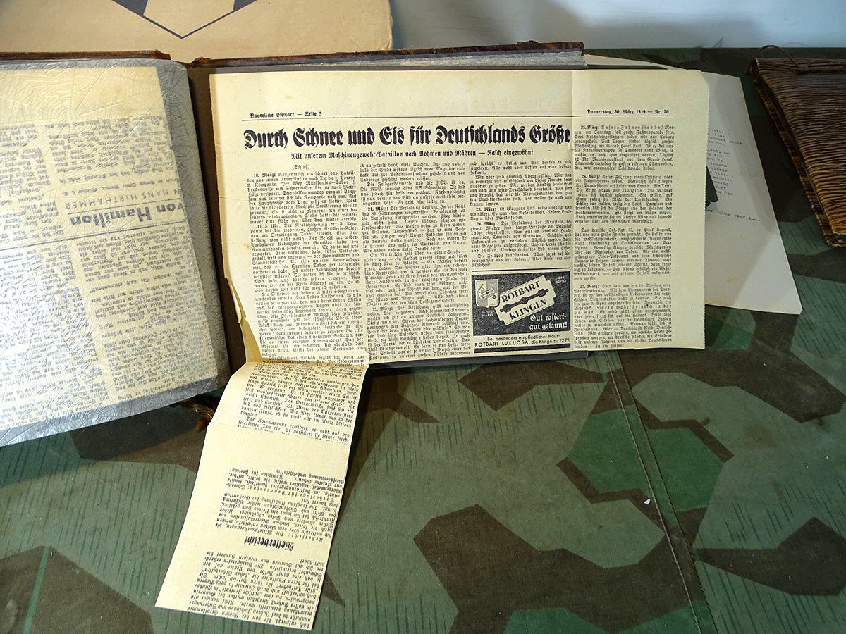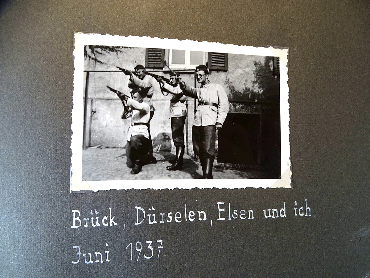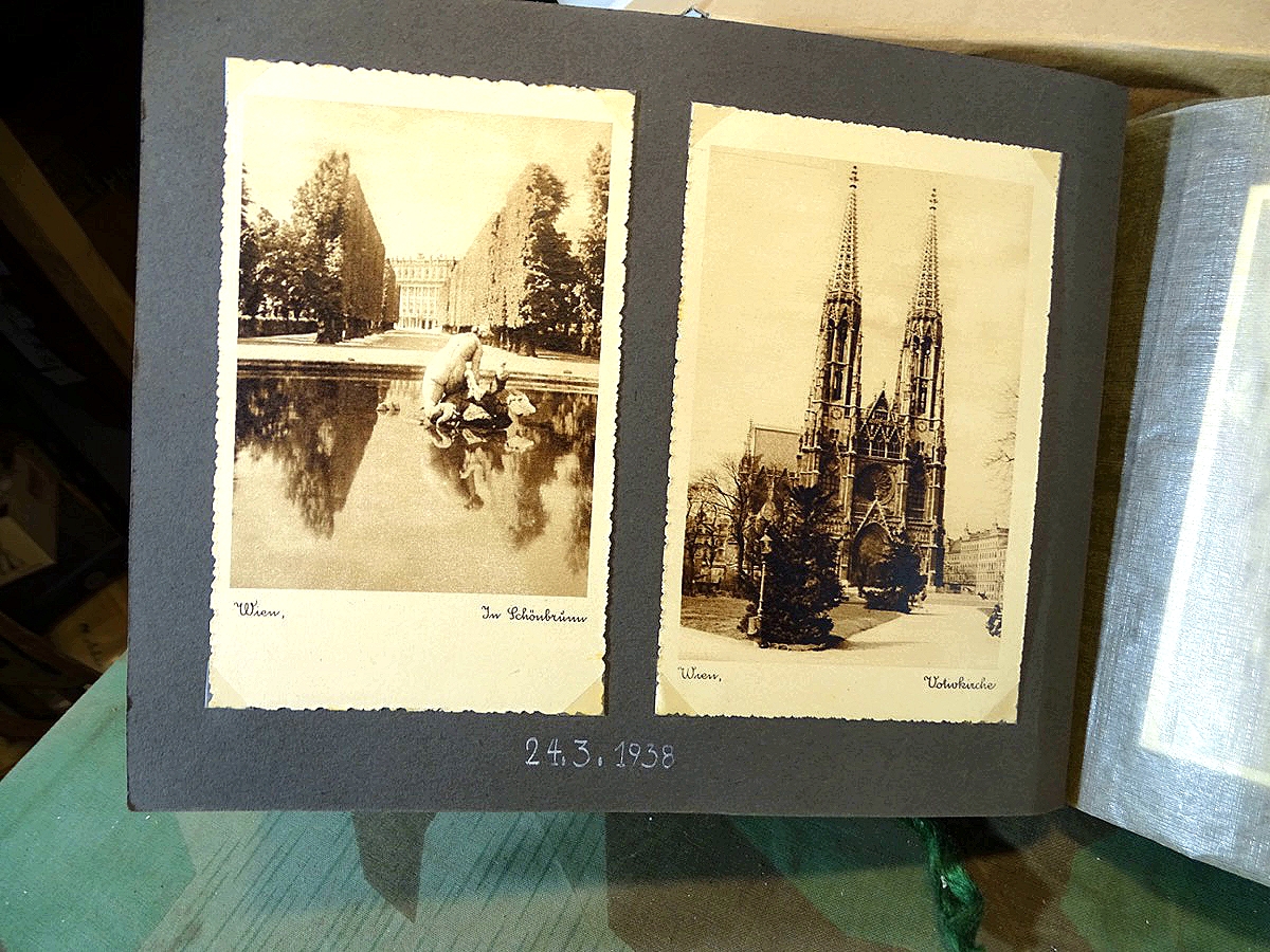3. Album in braun, Coburg 1938, ca. 130 Fotos, Grafenwöhr 1938, 2 Feldzug Sept.- Okt. 38 , Sudetenland, viele postkartengroße Bilder, Viele Fotos mit sichtbarer Schulterkalppe mit MG, mehrere Zeitungsauschnitte dazu. Feldzug März / April 1939, Böhmen, Mähren, Prag. Tabor, Ilgau ,