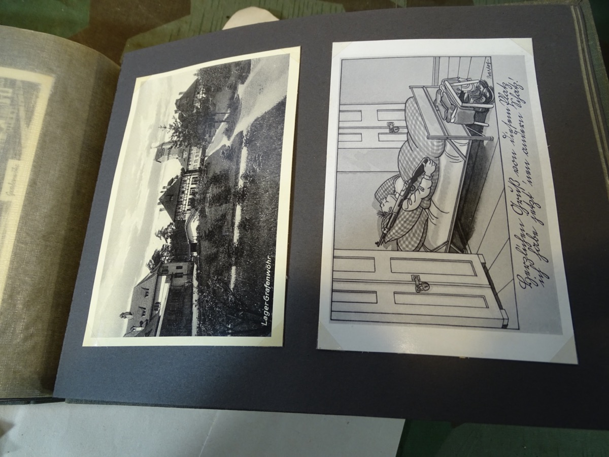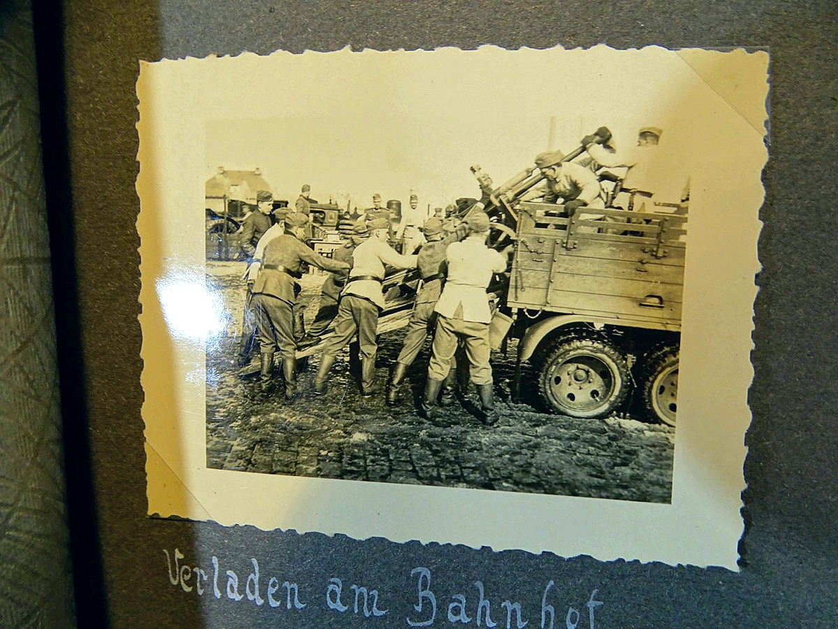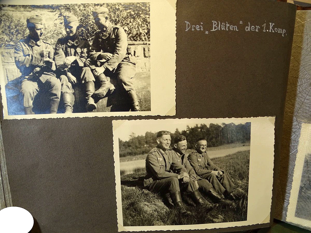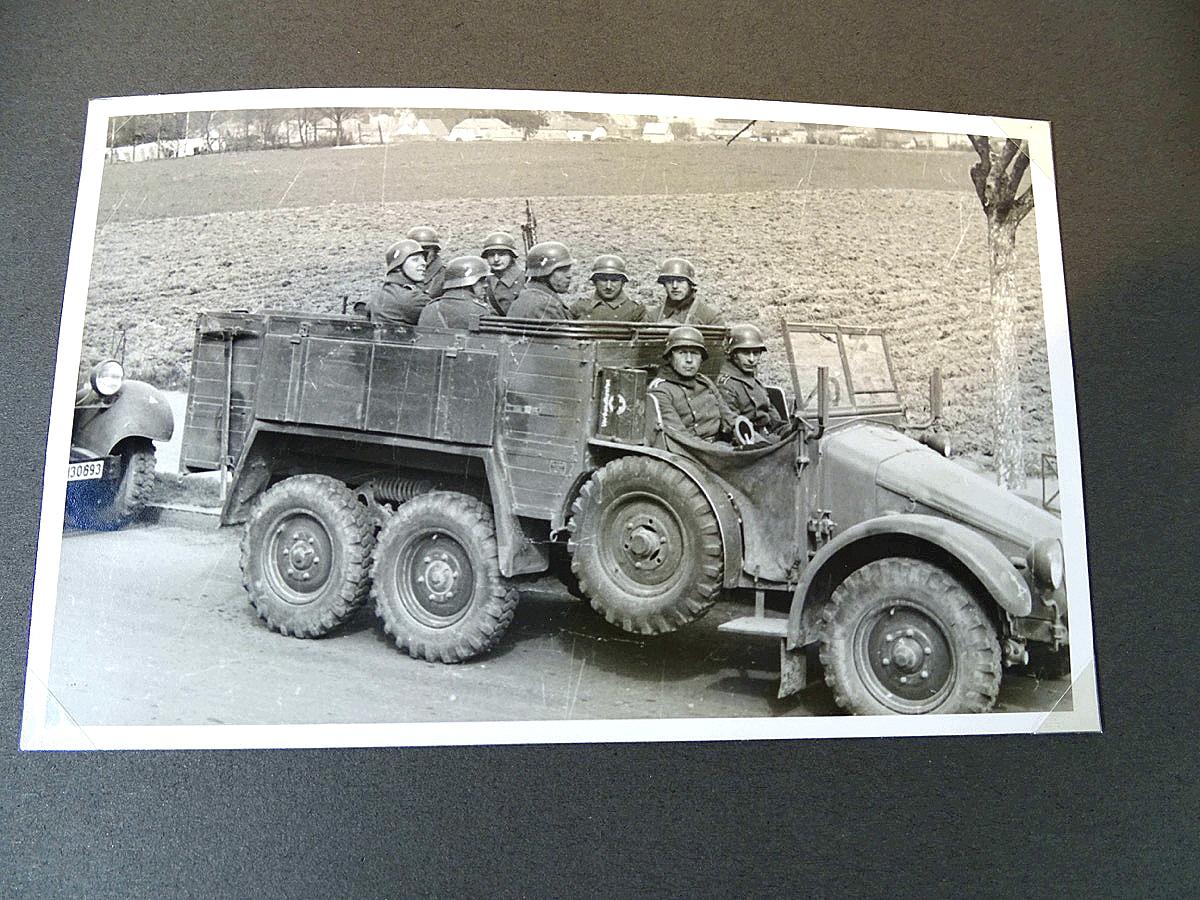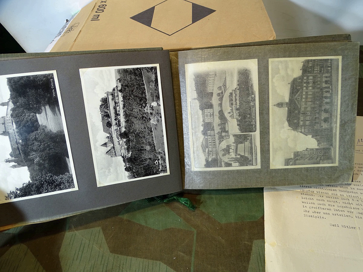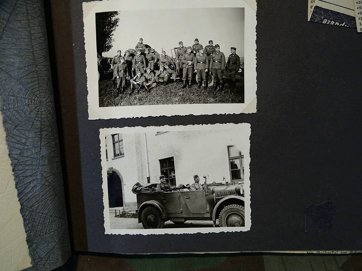 1. ) Grünes Album mit erhabenem WH Helm und tiefgeprägter Schrift: 1.MG Btl. 6 Weihnachten 1937, alle Bilder sauber und leserlich beschriftet. 1 Seite mit Glückwunschkarte des Hauptmanns u Kp. Chefs zur Weihnacht 1937, 2 Seite mit aufgeklammertem Miniatur Schirmmützen Mützeneichenlaub und Schulterklappen Auflagen "MG". 3 Ansichtskarten der Hindenburgkaserne Coburg, Foto des Kp. Chefs Hauptmann König u Btl. Kdr. Oberstleutnant Adelhoch, Bilder von Motorrad Artistik zugunsten des WHW 1937. Standortlazarett Nürnberg Fürth u seligen Andenkenhaus. 2 eingeklebte Militär Fahrkarten, Gefechtsstrassen Ahlstadt Feb. 1938, März 38 Einmarsch Österreich Wien. Blatt mit Tagebuch des Österreich Feldzuges. Zeitungsauschnitte 1.4.38 über Heimkehr 1.MG Btl. 6., April -Mai 1938 Truppenübungsplatz Grafenwöhr, Schöne Fotos von Kradschützen und 6 Rad Geländewagen im Einssatz.