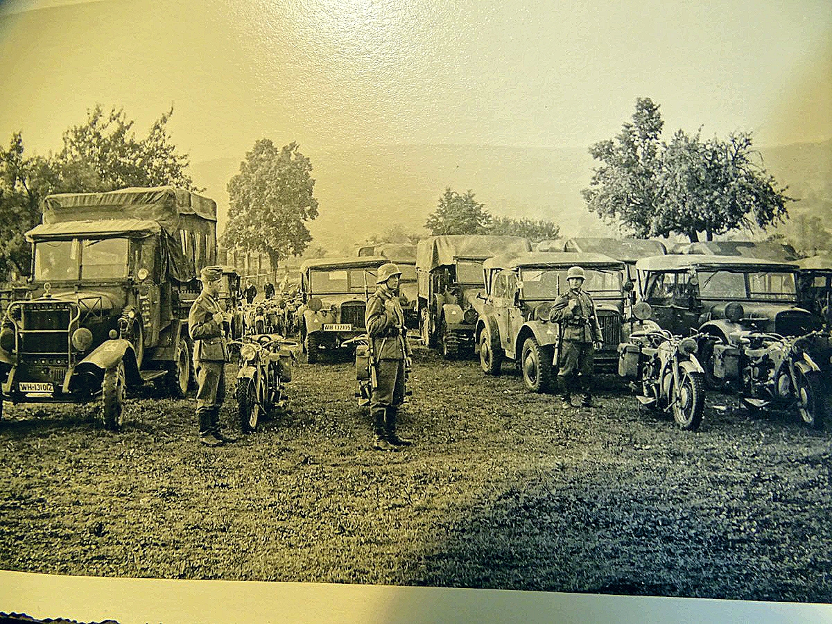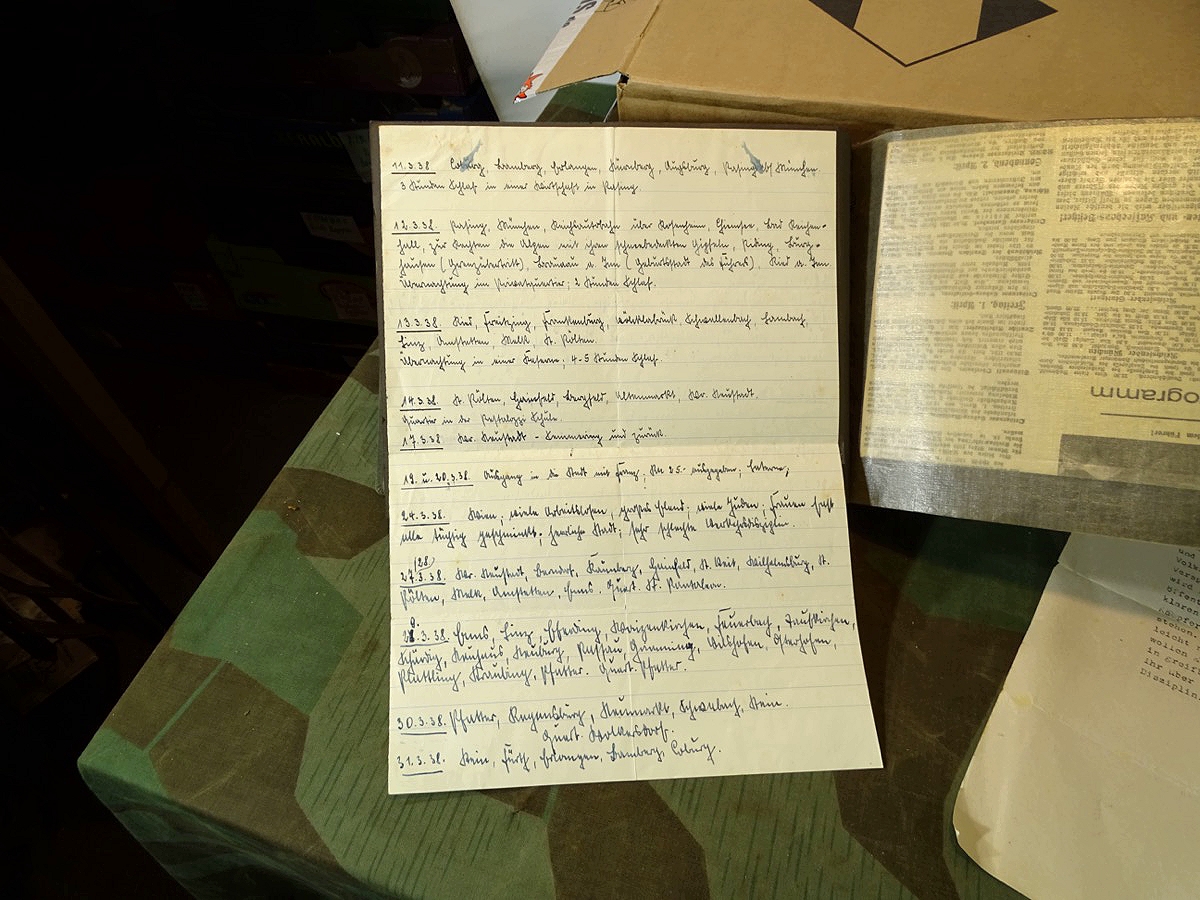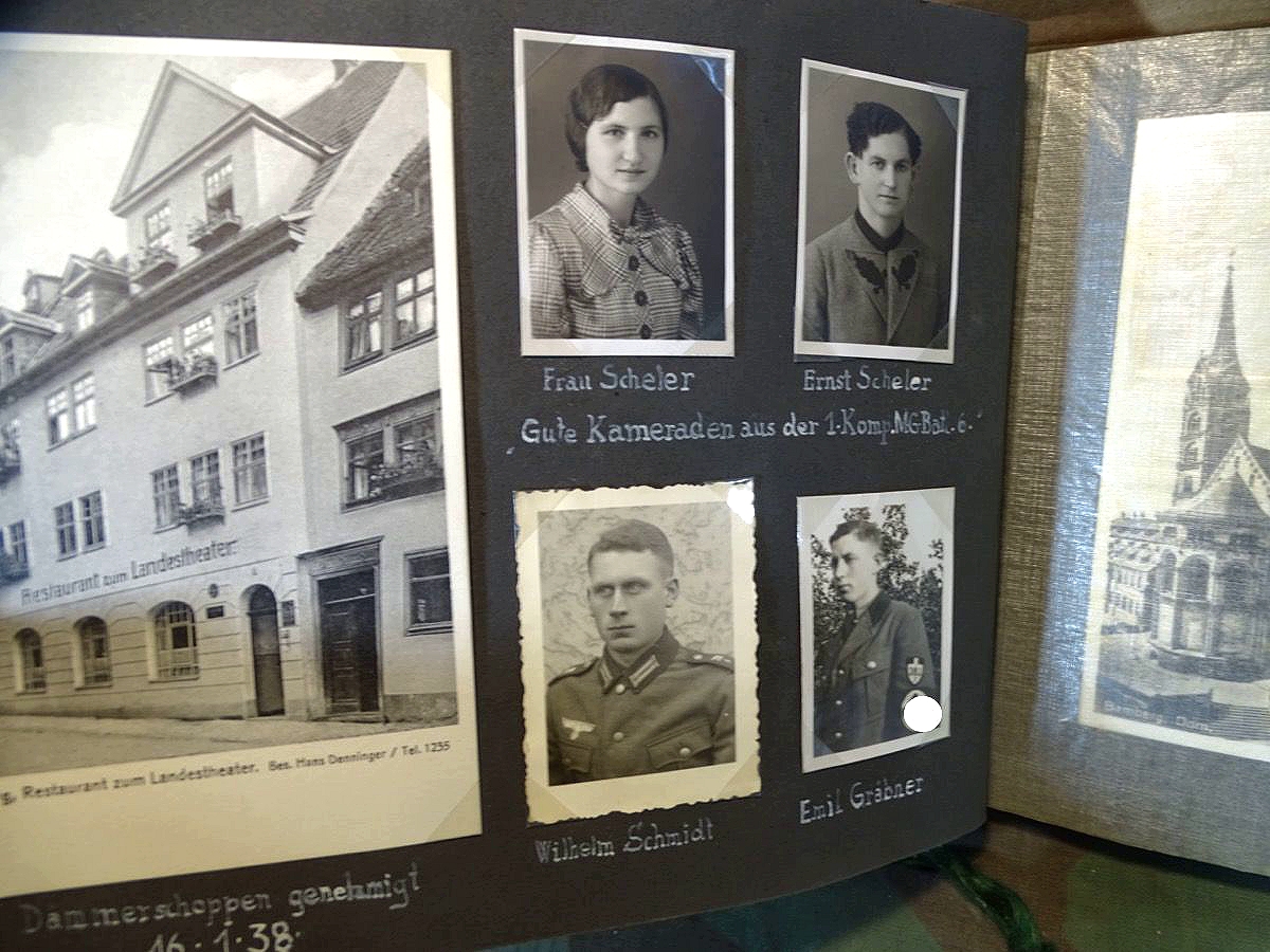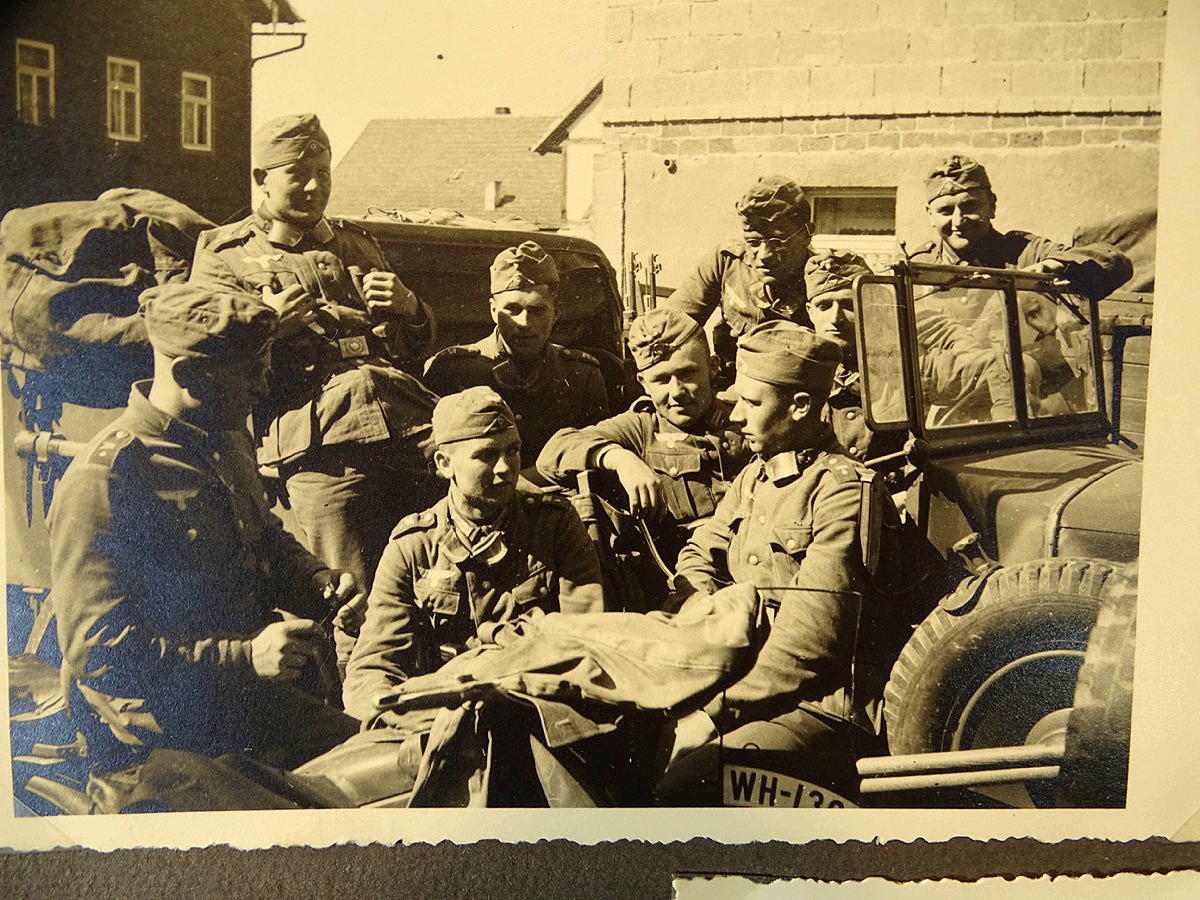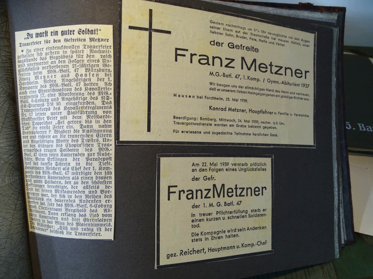 1. ) Grünes Album mit erhabenem WH Helm und tiefgeprägter Schrift: 1.MG Btl. 6 Weihnachten 1937, alle Bilder sauber und leserlich beschriftet. 1 Seite mit Glückwunschkarte des Hauptmanns u Kp. Chefs zur Weihnacht 1937, 2 Seite mit aufgeklammertem Miniatur Schirmmützen Mützeneichenlaub und Schulterklappen Auflagen "MG". 3 Ansichtskarten der Hindenburgkaserne Coburg, Foto des Kp. Chefs Hauptmann König u Btl. Kdr. Oberstleutnant Adelhoch, Bilder von Motorrad Artistik zugunsten des WHW 1937. Standortlazarett Nürnberg Fürth u seligen Andenkenhaus. 2 eingeklebte Militär Fahrkarten, Gefechtsstrassen Ahlstadt Feb. 1938, März 38 Einmarsch Österreich Wien. Blatt mit Tagebuch des Österreich Feldzuges. Zeitungsauschnitte 1.4.38 über Heimkehr 1.MG Btl. 6., April -Mai 1938 Truppenübungsplatz Grafenwöhr, Schöne Fotos von Kradschützen und 6 Rad Geländewagen im Einssatz.