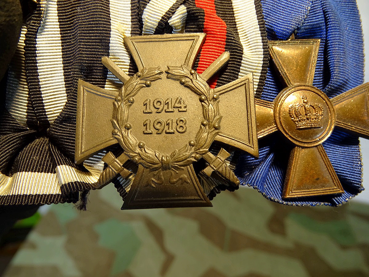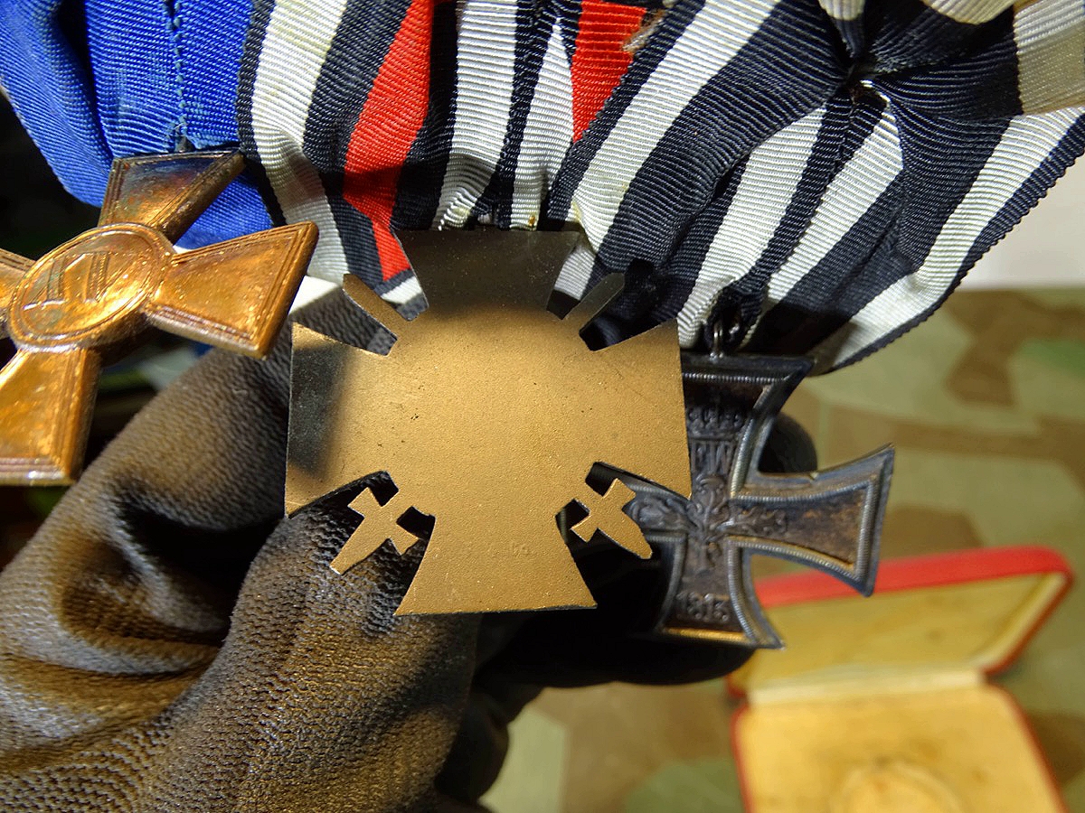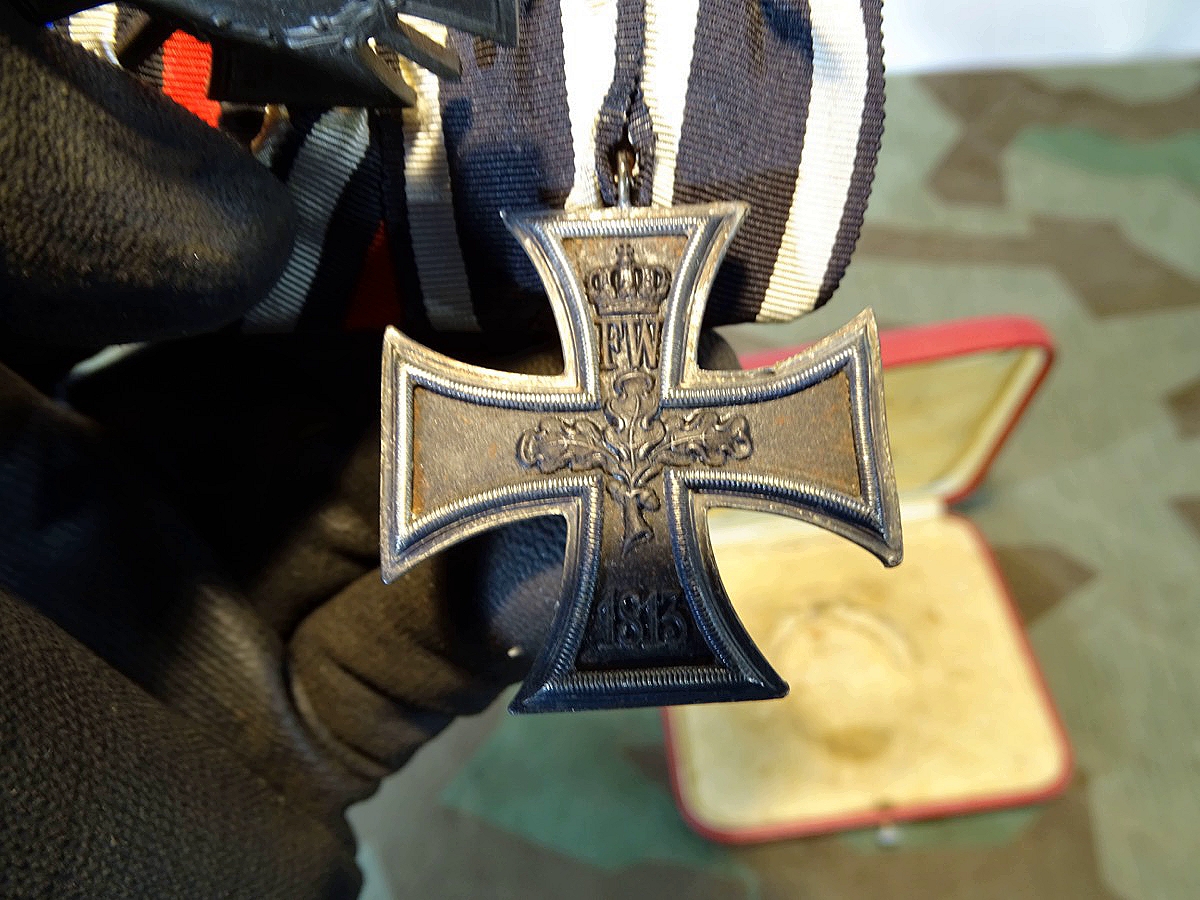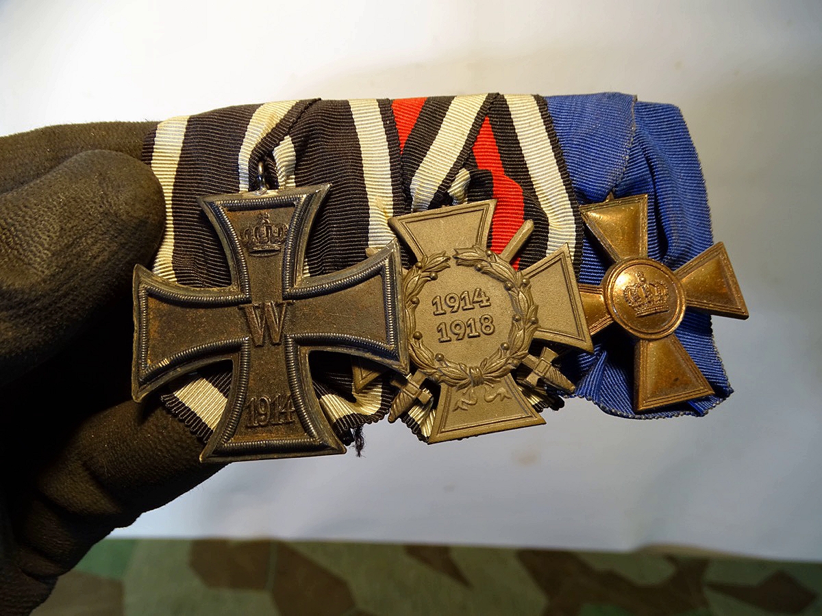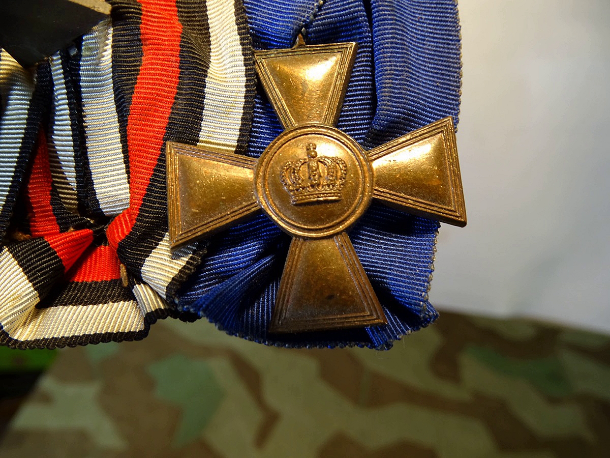 Produktinformationen "3er Ordensspange EK 2 1914, Ehrenkr f. Frontkpf. , preuss mil. DA 15 Jahre, mit altem Schmuckkästchen"
