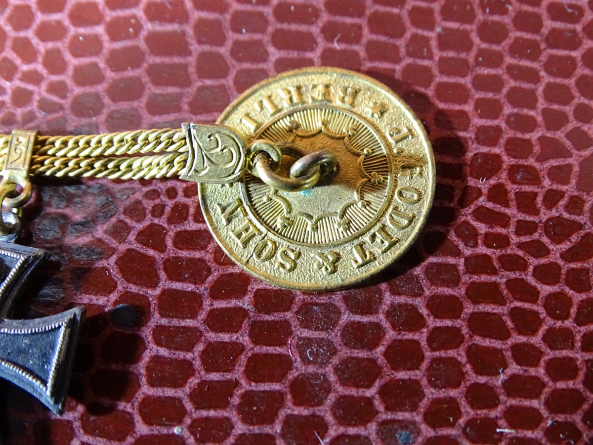 EK 2 1914, roter Adler Orden, Preussen Dienstauszeichnung für Offiziere für 25 Jahre, Centenaer Medaille. Auf Knopf mit Herstellermarke der Fa. J. Godett & Sohn Berlin. Zustand siehe Fotos