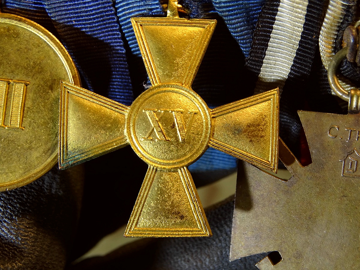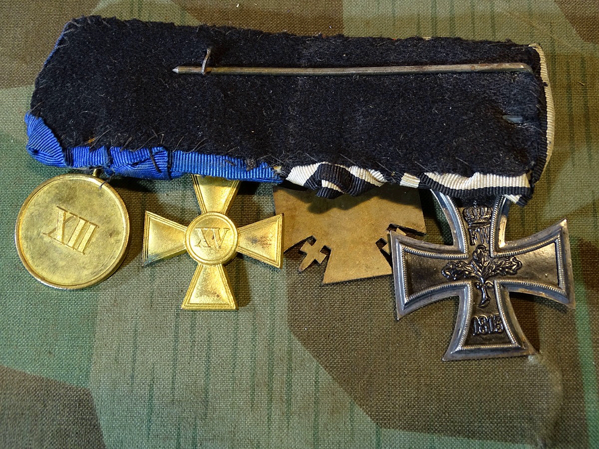 4er Ordensspange: EK 2. 1914, Ehrenkr. 1914/18, DA Preussen 12.- u. 15 Jahre