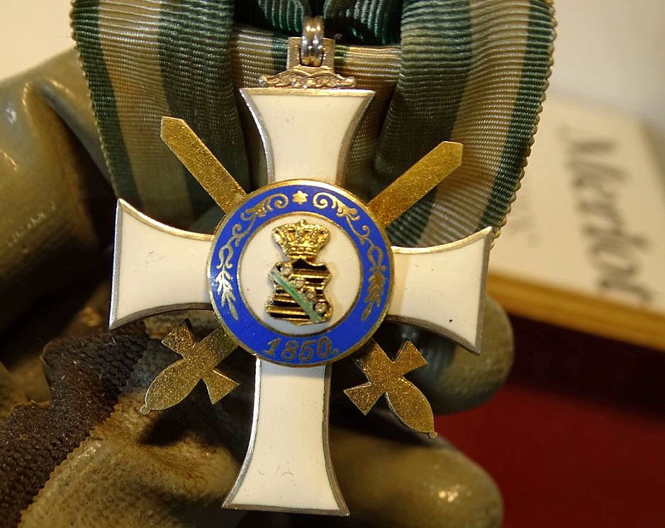 Albrechts Orden Sachsen, Ritterkreuz mit Schwertern 2. Klasse an Einzelspange, Scharfenberg Dresden