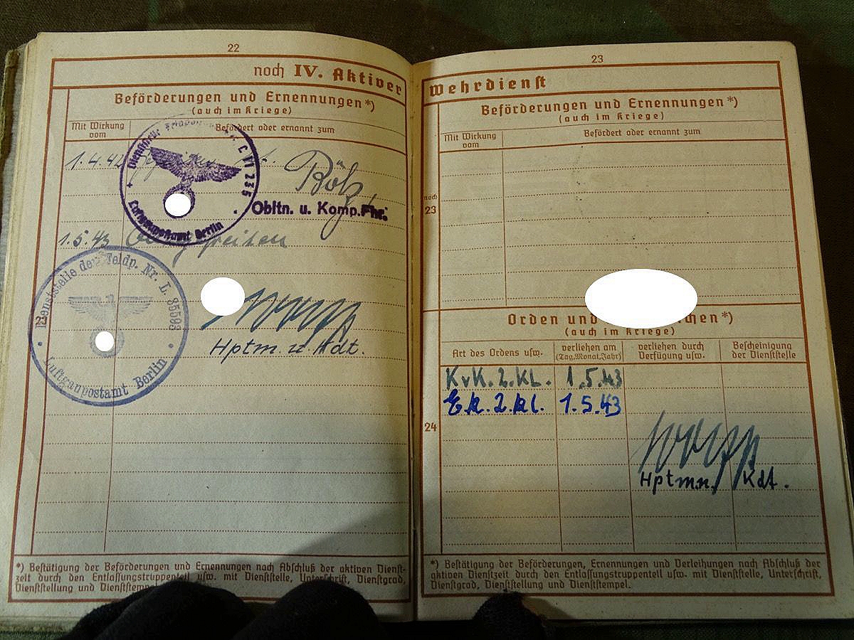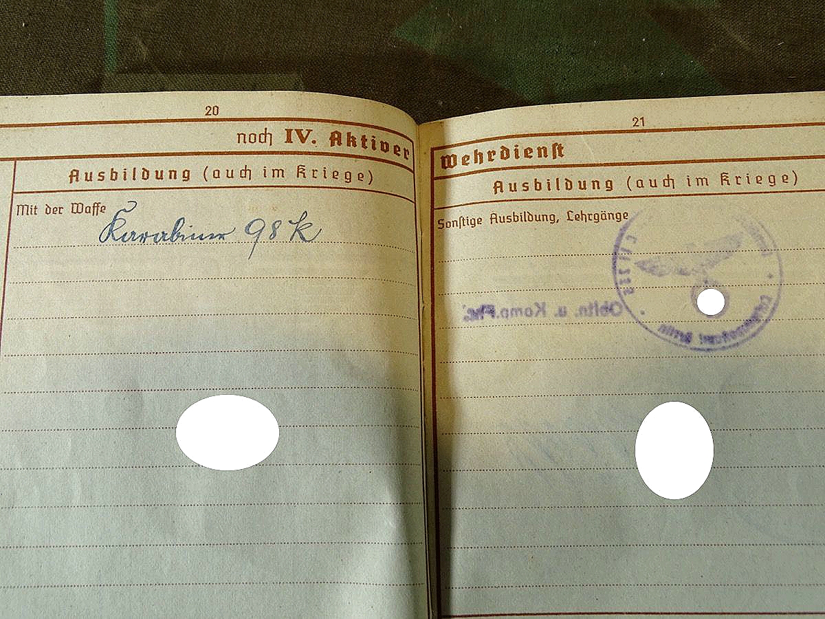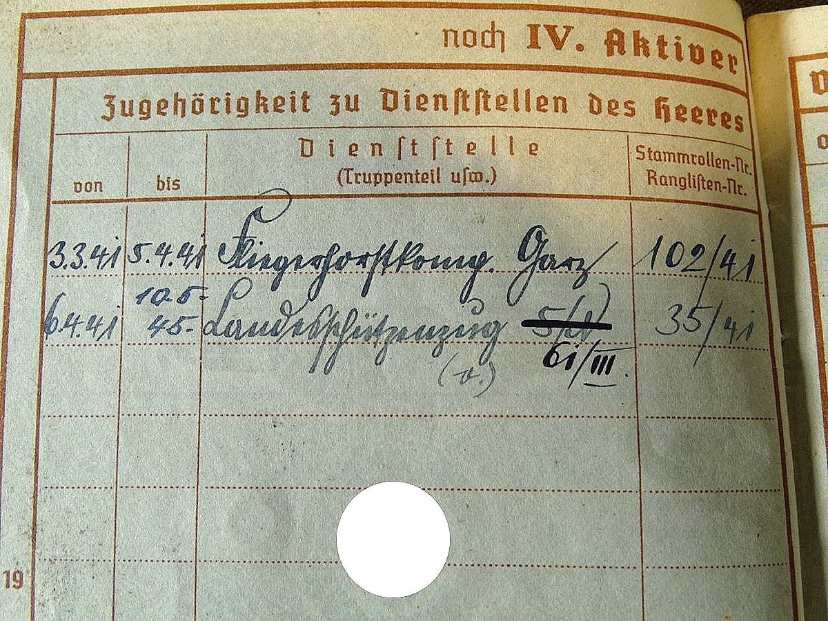 Wehrpass, R.Stieger. 1941 Fliegerhorst Kp.Garz. 1941-45 Sicherung Norwegens u.Luftkrieg m. England.