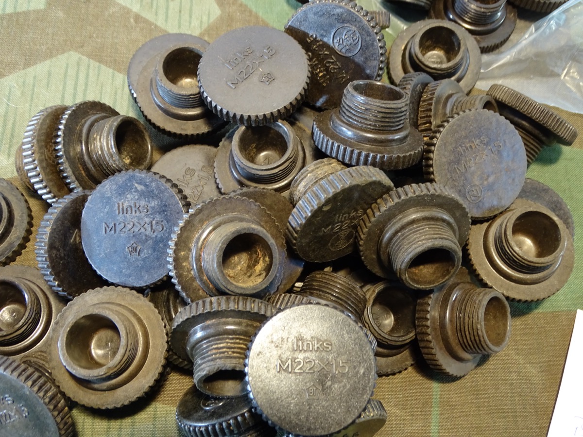Z 2-, kleine Bakelit FehlstellenZünderersatzstück / Zünderersatzschrauben / Transportsicherungen M 22 x 1,5 . Für die Geschoss Bodenschrauben von 3,7 cm Panzer Granaten. Zustand siehe Fotos. Das Foto steht stellvertretend für unseren Bestand an gleichwertigen Artikeln gleichen Zustands. Mehrere bei Bestellung vorrätig. Es kann daher bei Lieferung zu Abweichungen zum Foto kommen. Preis bezieht sich auf ein Stück. Das Foto mit Deko Granate dient der Verdeutlichung. Die Deko Granate ist nicht im Angebot enthalten.