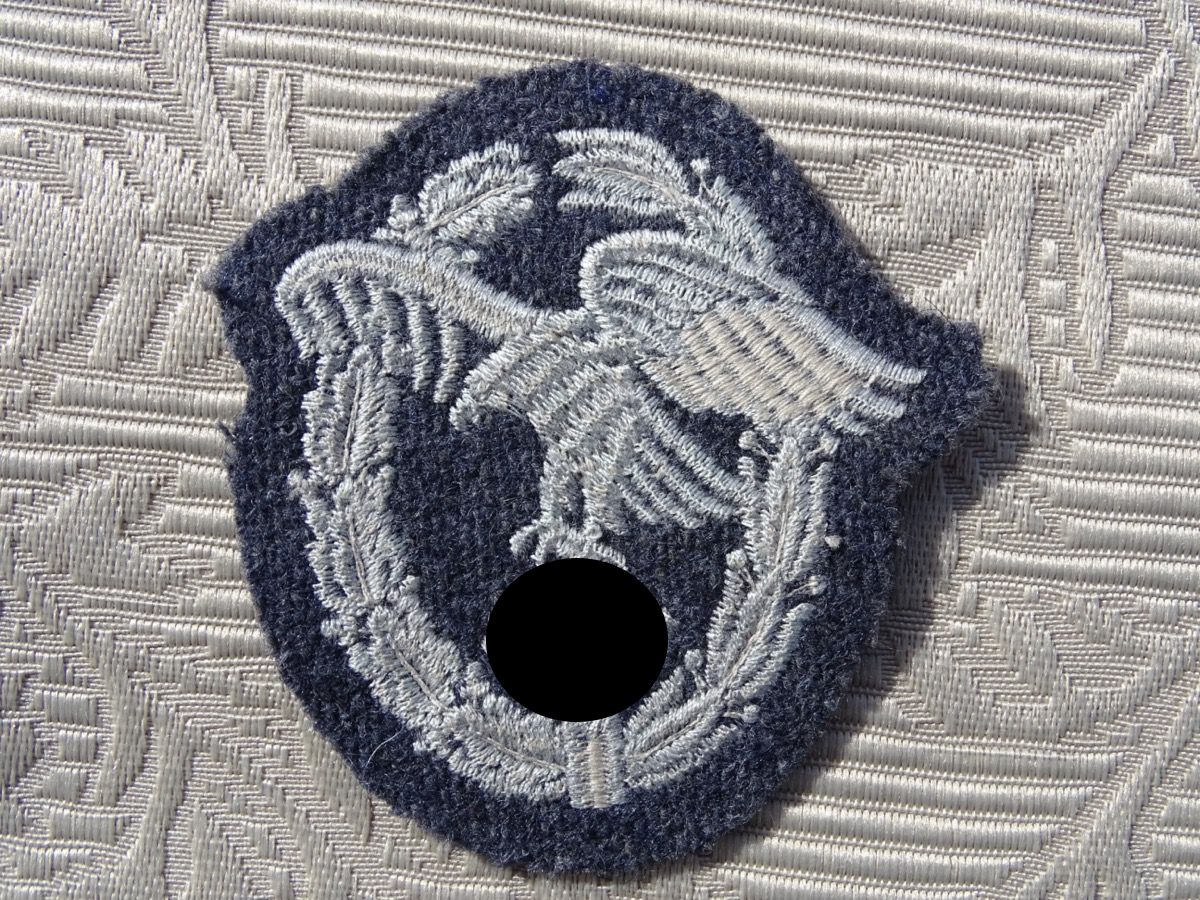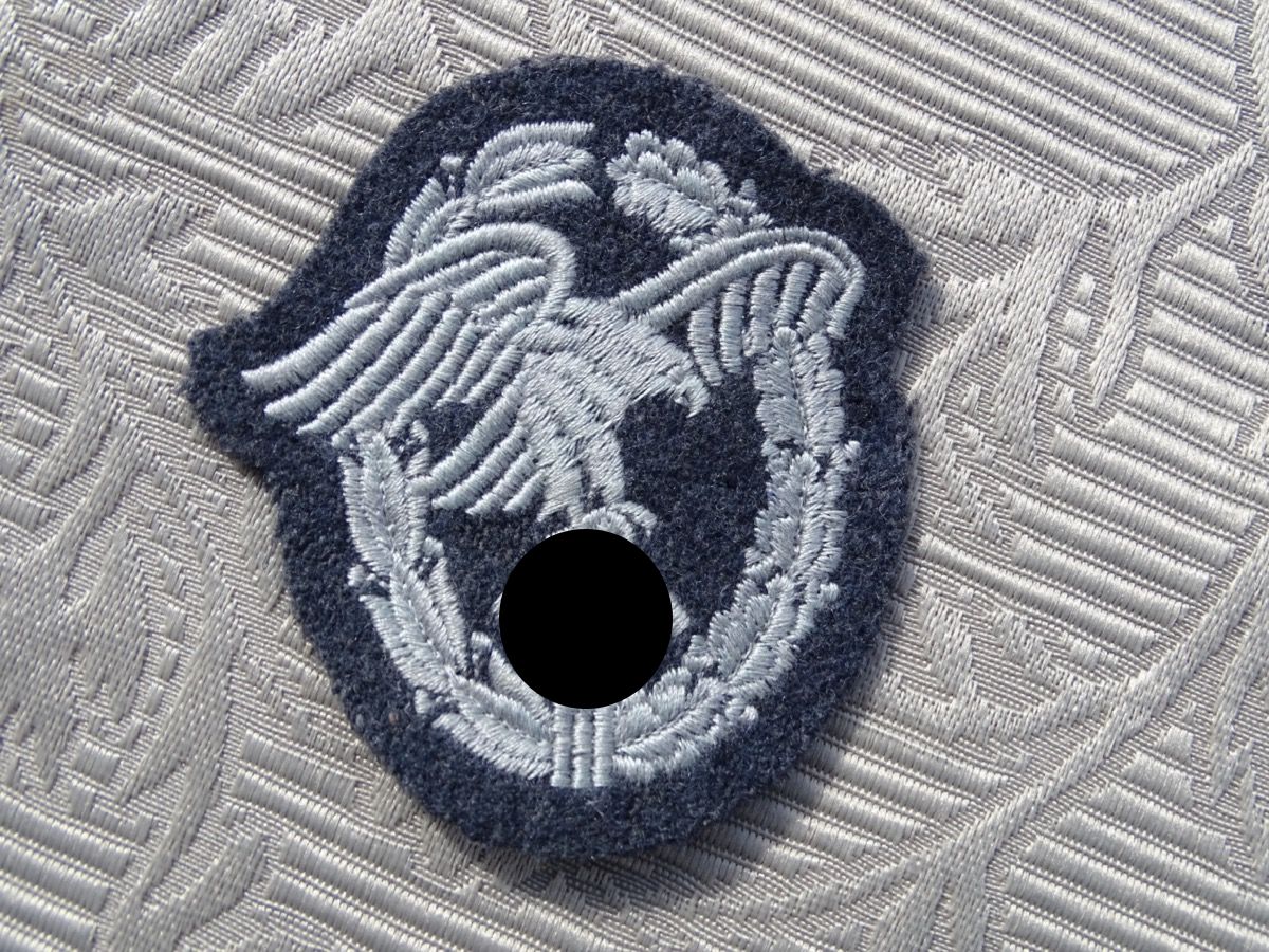 Produktinformationen "Beobachter Abzeichen der Luftwaffe, mattgrau gestickt auf blaugrauer Unterlage. "