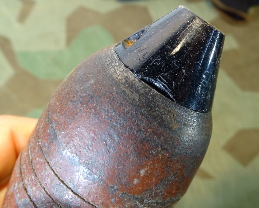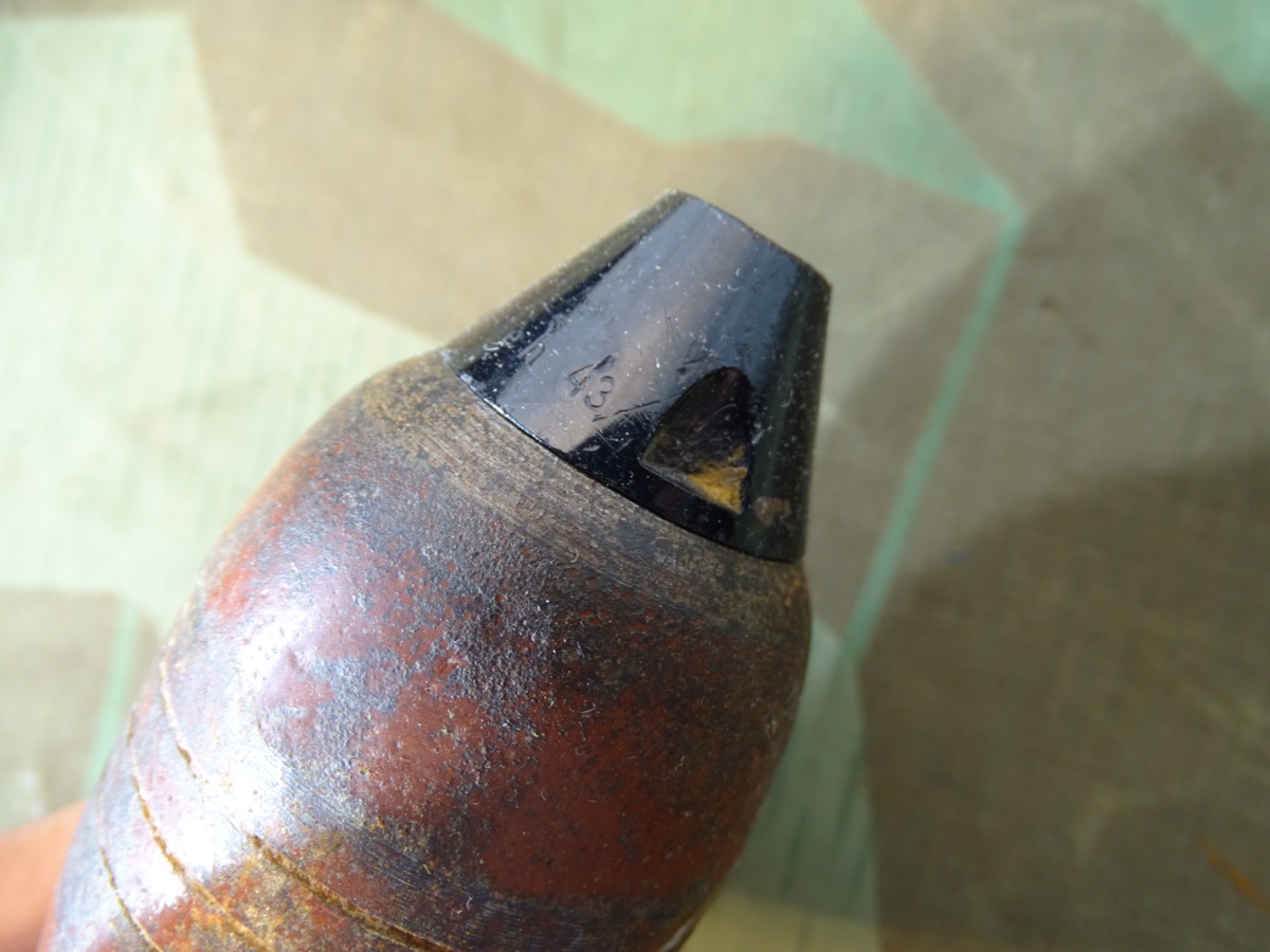 Produktinformationen "Deutsche 50mm Deko Werfer Granate, 41 crq, 2. Weltkrieg mit Bakelitzünder, schöner Zustand"
