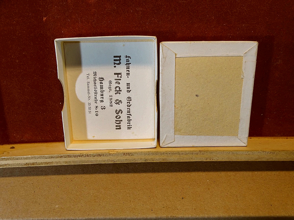 Sehr schönes, sehr schön erhaltenes, komplettes Set. So als zusammengehöriges Ensemble aus gleichem privaten Trägernachlass angekauft. 1.WK, Deutsches Feld-Ehrenzeichen, GES.GESCH.,Hamburg 11, aus Buntmetall-emailliert, mit Miniatur an langer Nadel und Miniatur mit Öse für Frackkettechen und original Verleihungsschachtel. Zustand siehe Fotos.