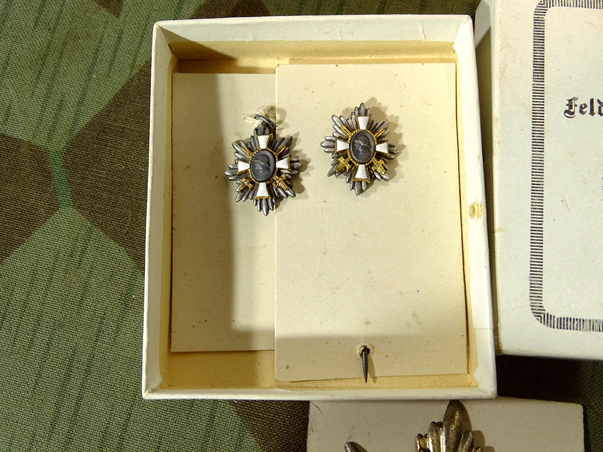 Deutsches Feld Ehrenzeichen mit Schachtel, Band, Miniatur mit Öse und Miniatur mit langer Nadel. Top Set !