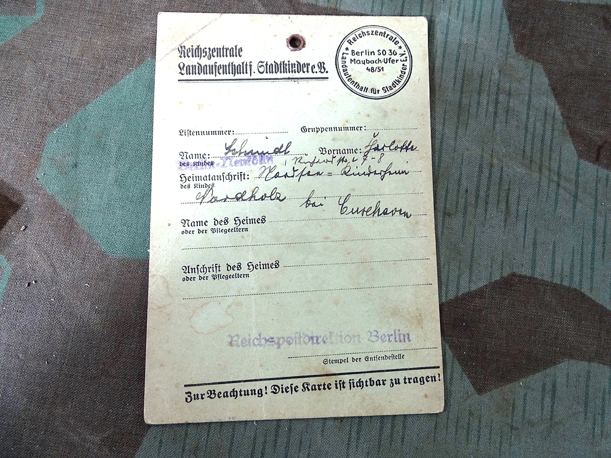 Deutsches Reich Arbeitsbuch, Kriegsausführung, Charlotte Sch.,Berlin, Ausweis Kinderlandverschickung