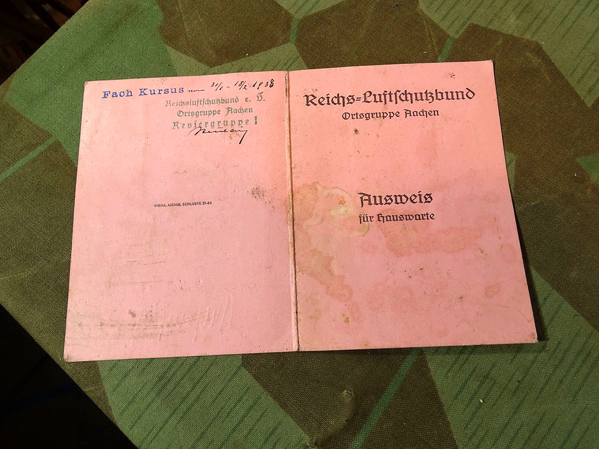 Dienstausweis Reichs-Luftschutzbund Gruppe Aachen, Ausweis für Hauswarte 1936