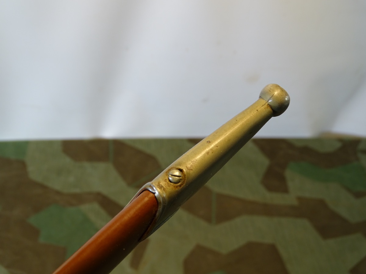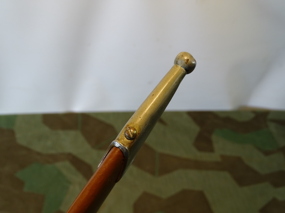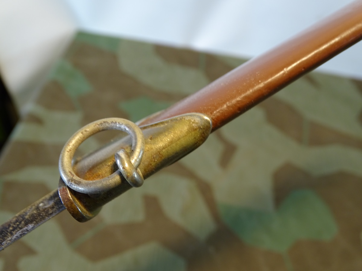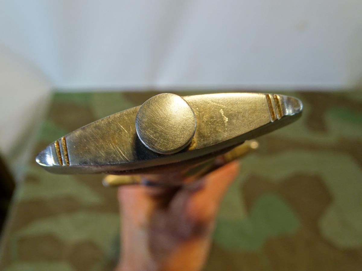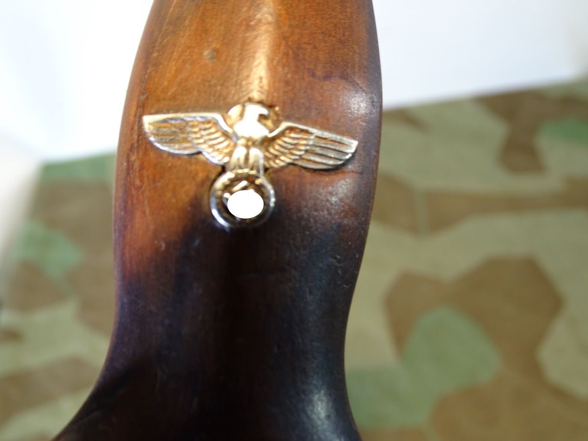 Früher und seltener SA Dolch. Auf der Klinge mit seltenem Hersteller F. Herder A.S. Solingen. Der Adler und die Pastille original und sauber eingesetzt. Der Griff mit 1 Haarriss und Lagerspuren. Auf der Parierstange mit SA-Gruppenstempelung "Wf" für Westfalen. Klinge mit schöner tiefer, dunkler Devisen Ätzung " Alles für Deutschland". Umseitig mit Herstellermarke F.Herder A.S. Solingen. Neusilber Adler, sitzt perfekt in Aussparung, war nie raus. HK vollständig erhalten. Emailliertes SA Emblem nutzungsbedingt etwas verkratzt aber vollständig ohne Emaillechips erhalten. Holz Griff sitzt gut angepasst und ohne große Abstände in den Schiffchen wie es sein soll. Neben Herstellermarke auf Klinge ein paar Narben im Metall. Klinge generell noch gut erhalten, fast glatt und blank nur mit ein paar patinierten Strellen und kleineren Narben, siehe Fotos. Griff- und Scheidenbeschläge wohl mal gereinigt. Neusilber Beschläge. An unterem Schiedenbeschlag ist eine Schraube größer als die anderen, wohl mal vom Träger ersetzt worden. Unterer Scheidenbeschlag wackelt. Parierstange mit SA Gebietsbezeichnung Wf für Westfalen. Griff auf Rückseite mit schmalem Spannungsriss, dieser mit Holzkitt oder ähnlichem farblich passend verschlossen. Scheide ist wohl mal im laufe der Nutzungszeit neu lackiert worden. Zustand siehe Fotos. Bei Bestellung bitte Altersnachweis mitsenden (Kopie vom Personalausweis).