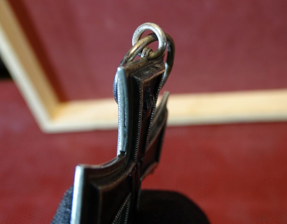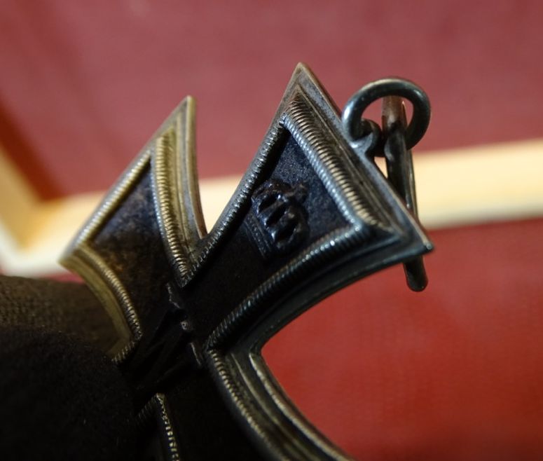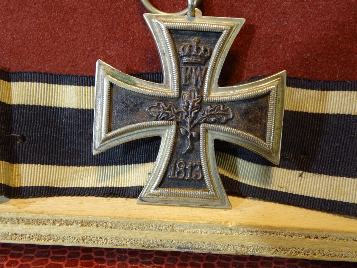 Guter Zustand. Ohne Kernbruch. Kernfarbe noch etwa zur Hälfte erhalten. Band mit ein paar Nadeleinstichen vom anheften an das Ordenskissen des Trägers. Zustand siehe Fotos.