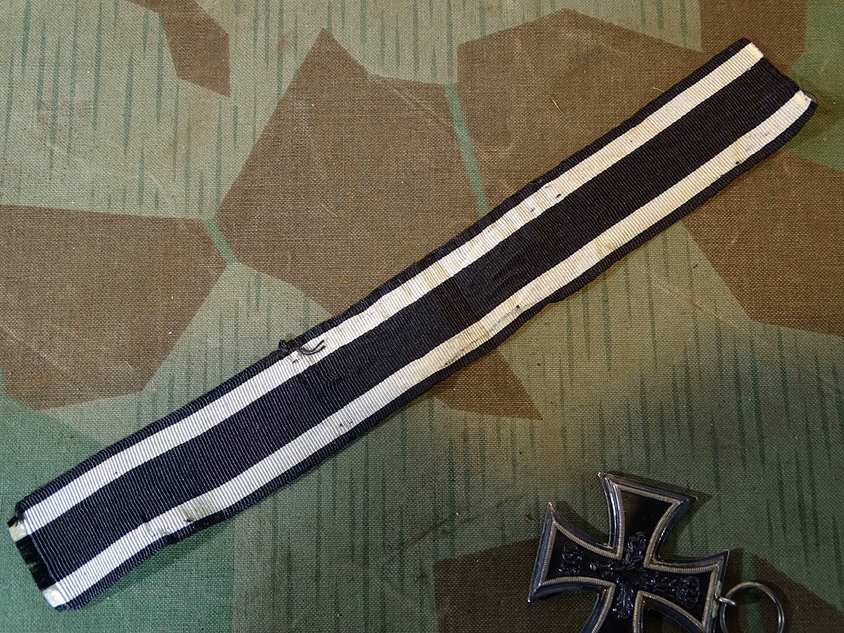 Eisernes Kreuz 2. Klasse 1914, Eisenkern noch komplett geschwärzt, langer Bandabschnitt