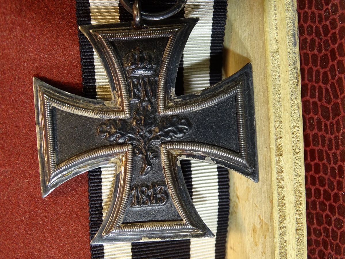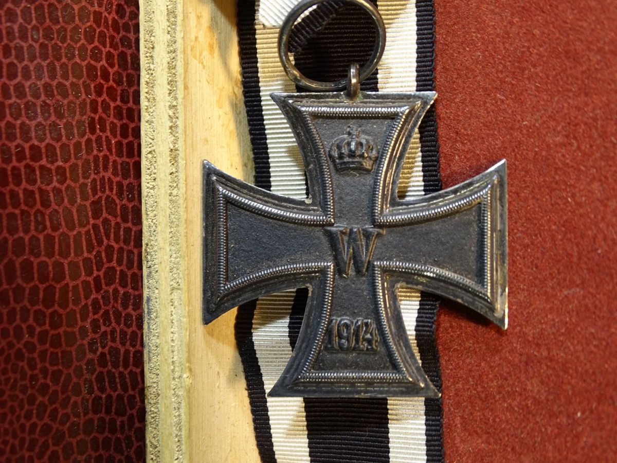 EK - guter, nur leicht getragener Zustand. Der Eisenkern mit fast vollständiger Schwärzung. Der Silber Rahmen mit gleichmässiger Patina. So abgebildet im Buch Frank Wernitz: Das Eiserne Kreuz 1813-1870-1914, dort beschrieben als Exemplar der Fa "Fr" für Gebr. Friedländer. Magnetisch.