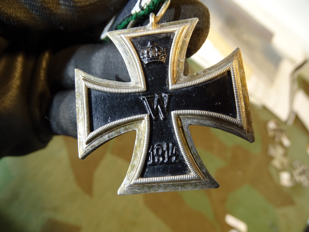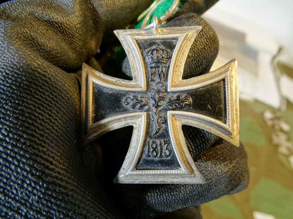 Spätes EK in der größeren Form des 2. Weltkriegs, guter, nur leicht getragener Zustand. Der Kern mit fast vollständiger Schwärzung, angestaubt, ungereinigt. Der Rahmen mit feiner Patina. Mit Herstellermarke im Ring, K das steht lt. Buch von Frank Wernitz - das Eiserne Kreuz 1813-1870--1914 wahrscheinlich für den Hofjuwelier W. Kluge & Co Berlin - Magnetisch. Seltener zu findender Hersteller. An Einzel Ordensspange mit sehr gut erhaltenem, farbfrischen Band.