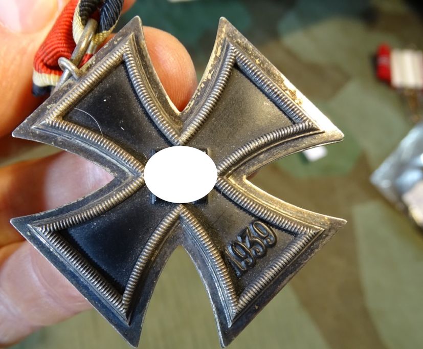 Produktinformationen "Eisernes Kreuz 2. Klasse 1939, Eisenkern, kpl. Schwärzung, an Bandabschnitt o. Hst. "