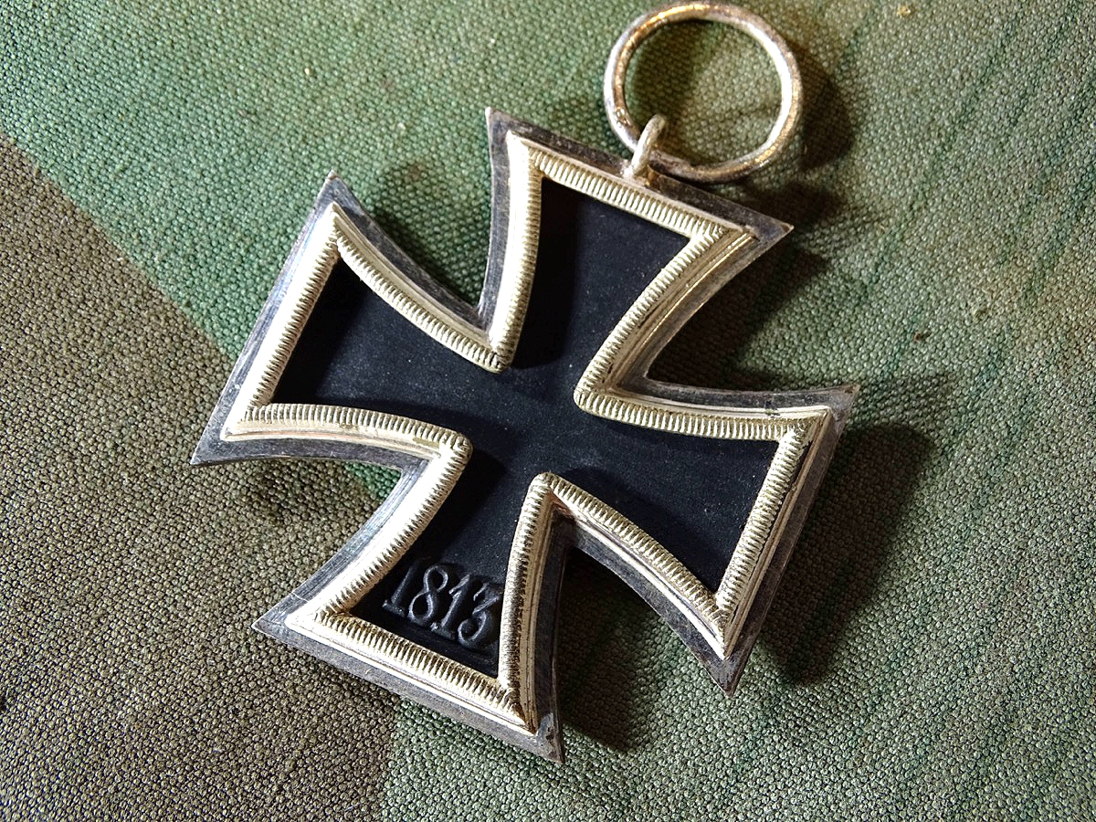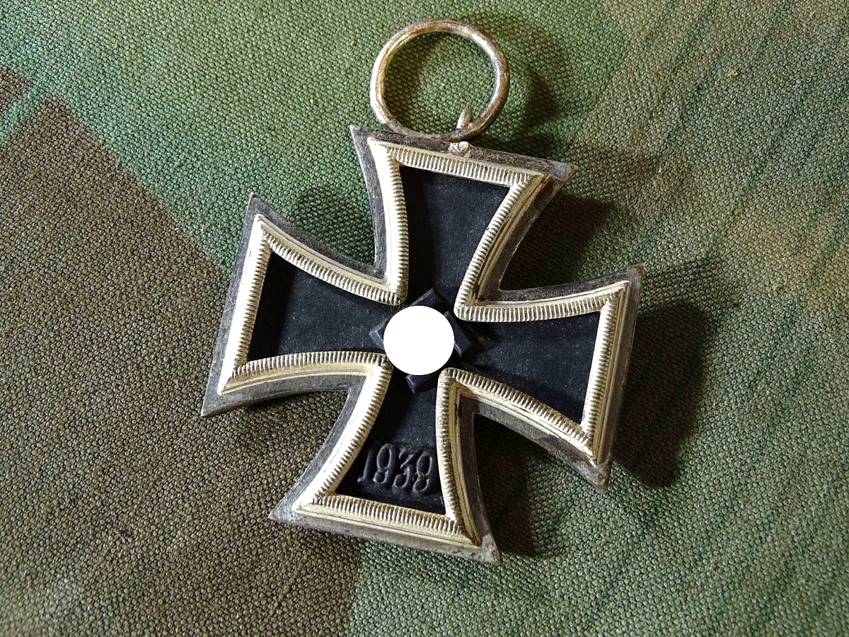 Sehr schöner Zustand, siehe Fotos. Kernfarbe noch vollständig schwarz erhalten, auf HK komplett erhalten. Eisernes Kreuz 2. Klasse 1939 am 10 cm langen Bandabschnitt. Hersteller 23 (Arbeitsgemeinschaft für Heeresbedarf in der Graveur & Ziselierinnung, Berlin), seltenerer Hersteller. Rand glänzend poliert, Zarge matt frostversilbert.