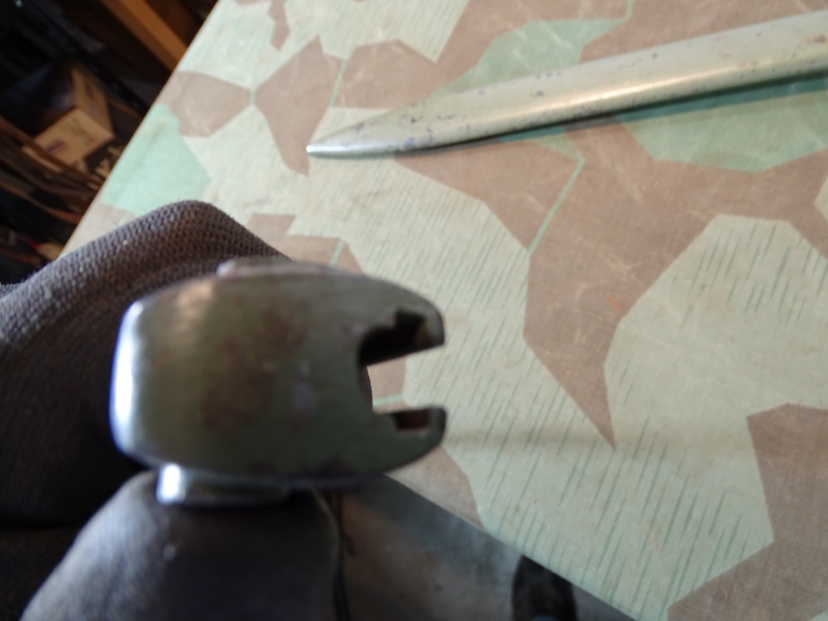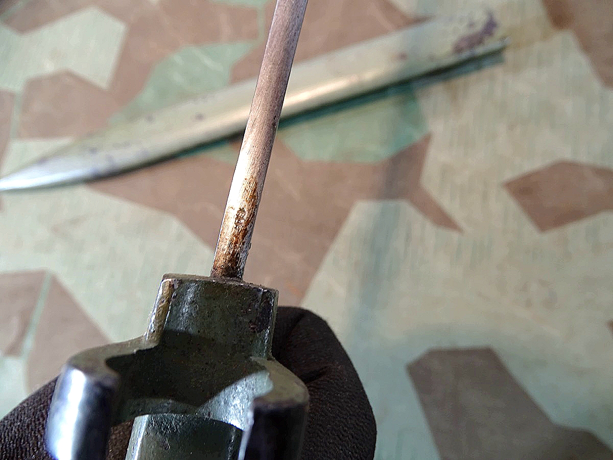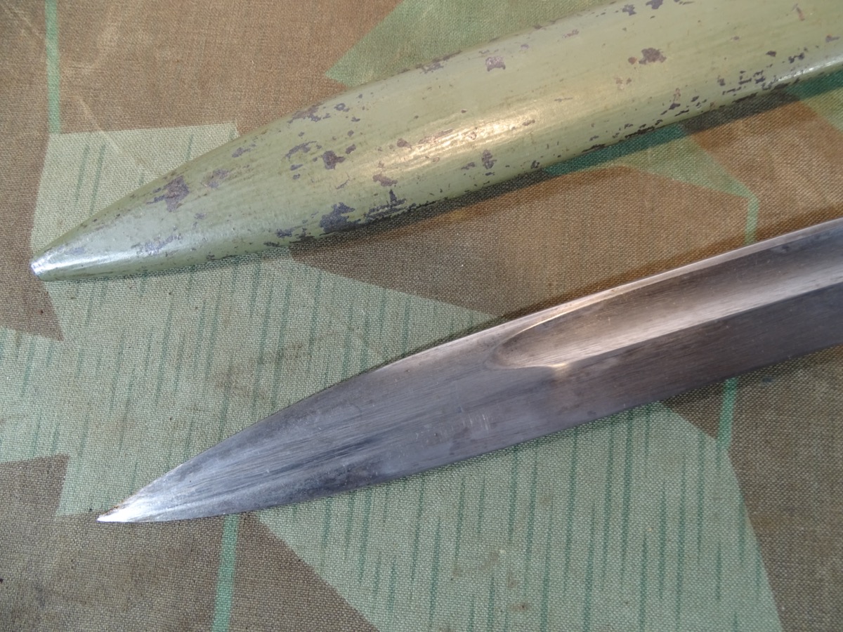 Produktinformationen "Ersatz- bzw. Notbajonett 88 /98, deutsches Reich, mit Waffenamts Abnahmepunze, viel Originallack"