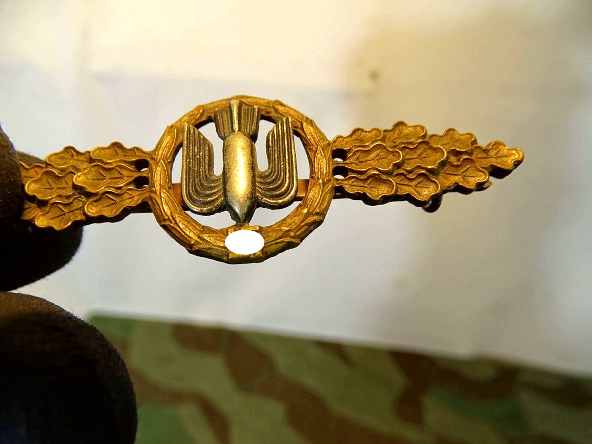 Frontflugspange für Kampfflieger in Bronze Buntmetall bronziert, die Bombe versilbert