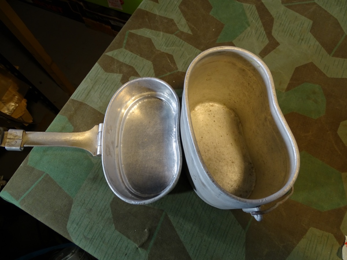 Produktinformationen "Frühes Wehrmacht Kochgeschirr , Unterteil JSD 35, Deckel ZPStZ 36, ohne Farbe"