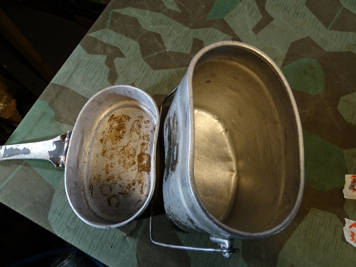Frühes Wehrmacht Kochgeschirr. Beide Teile gleiches Baujahr: Unterteil MN 37, Deckel SRM 37