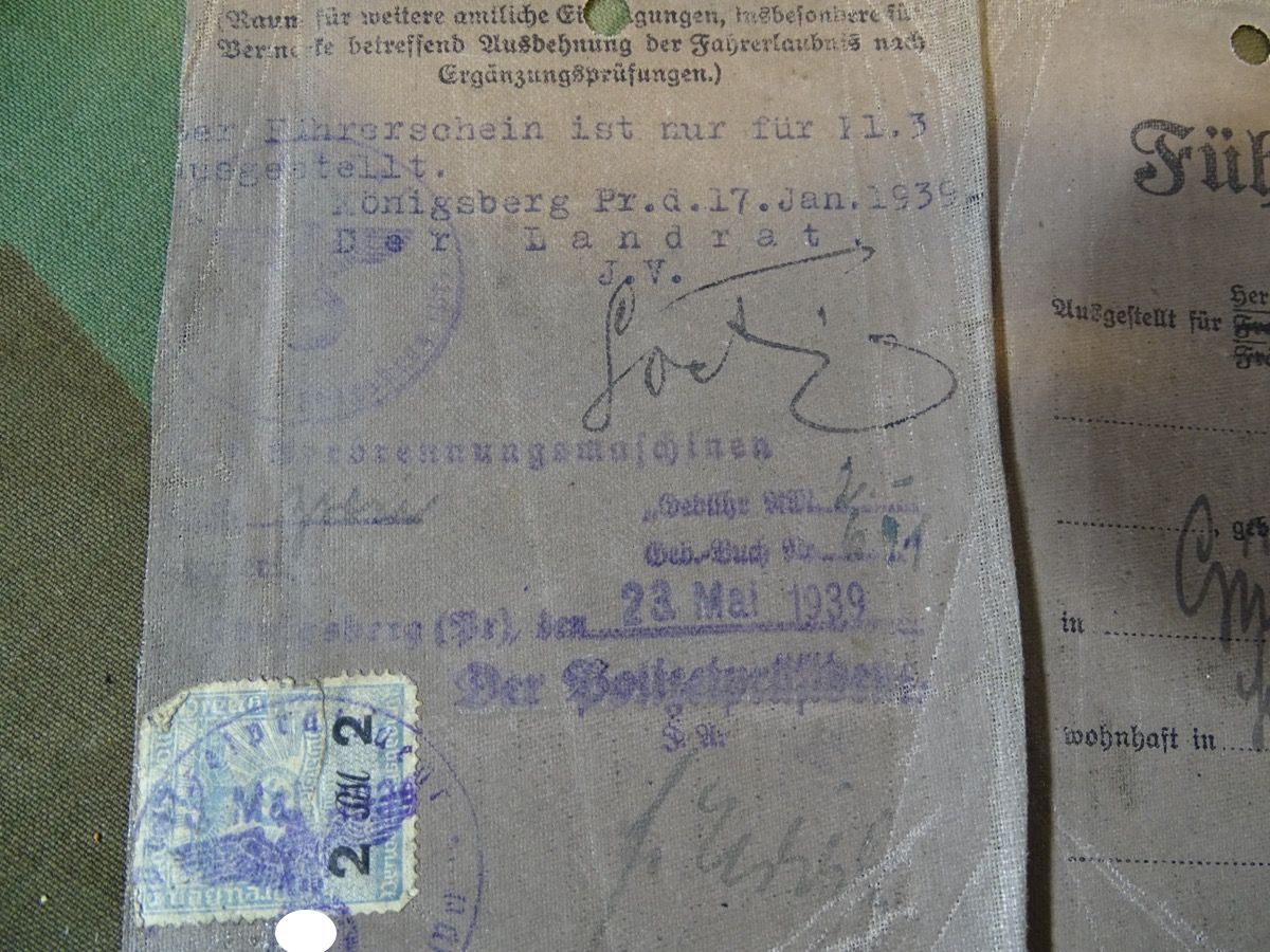 Produktinformationen "Führerschein Kl. 3 Königsberg /Pr. u. f. Anthrazit u.Holzgas Generator Kfz, NSKK/ NSFK Motorgruppe Wartheland"