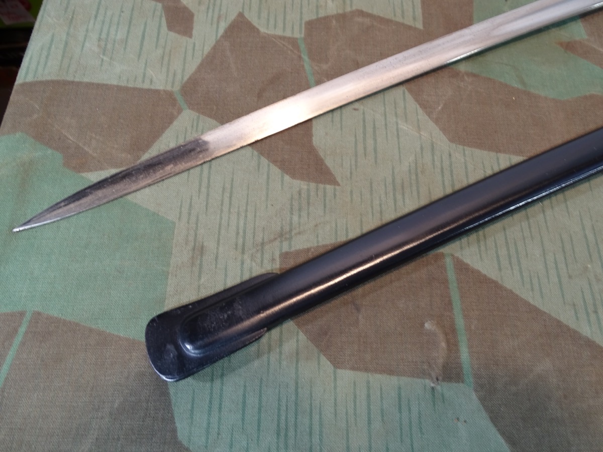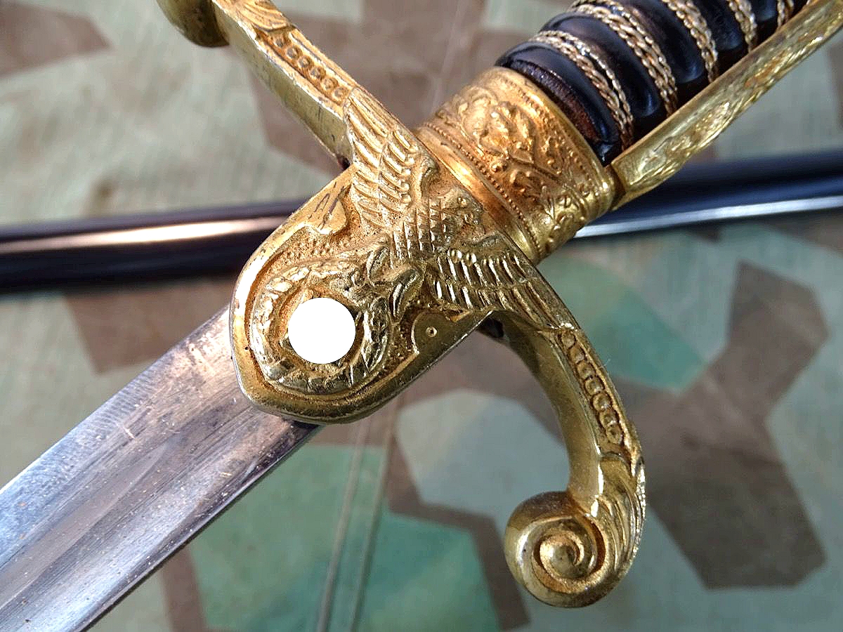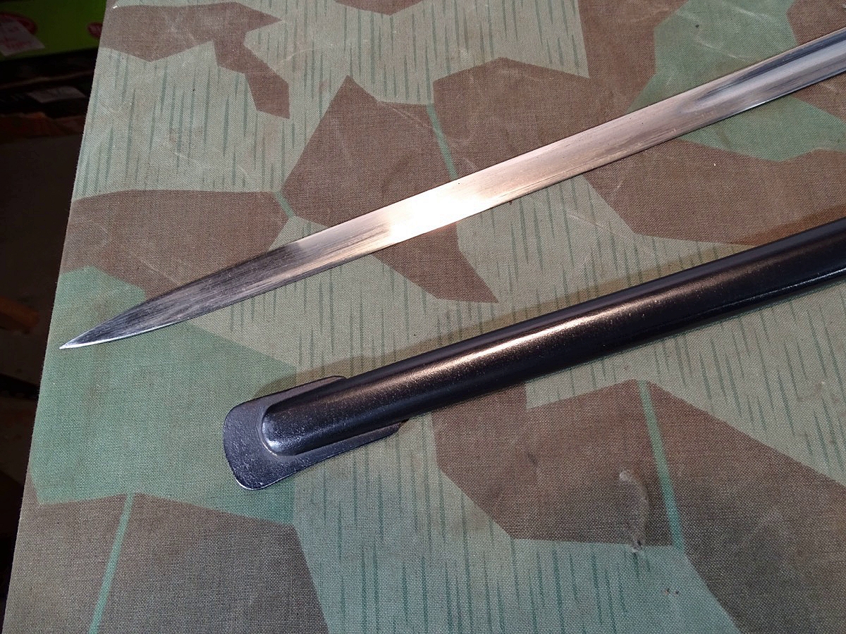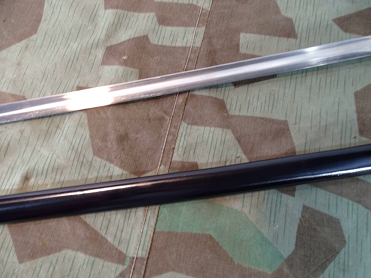 Dieses Modell mit dem Adler mit kleinen Fügeln - wie ein Parteiadler- ist nicht so oft im Handel. Intakte Wicklung. Sehr schöne Erhaltung. Klinge komplett blank ohne Scharten, mit Herstellermarke von WKC - Weyersberg Kirschbaum & Cie. WKC, Solingen, mit Firmenwappen Ritterkopf auf Klingenanfang unter Parierwappen. Scheide mit geringen Nutzungsspuren original Lackiert. Klingenlänge ca. 83,5 cm. Waffenlänge ca. 96,7 cm. Bei Bestellung bitte Altersnachweis senden oder mailen ( Kopie vom gültigen Personalausweis).