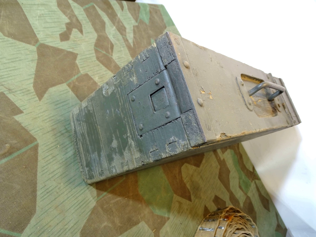 Produktinformationen "Holz Patronenkasten / Gurtkasten MG Schwarzlose mit Gurt, 1. Weltkrieg"
