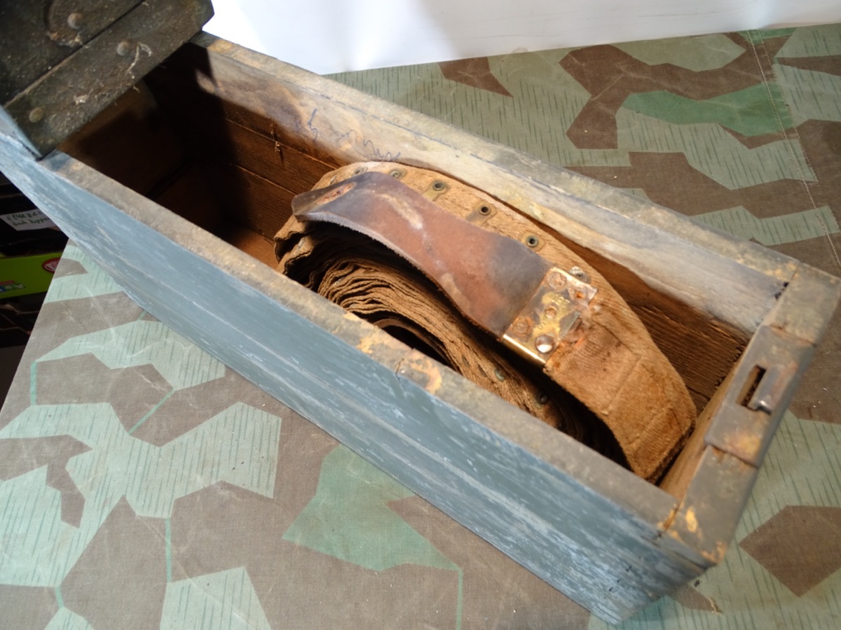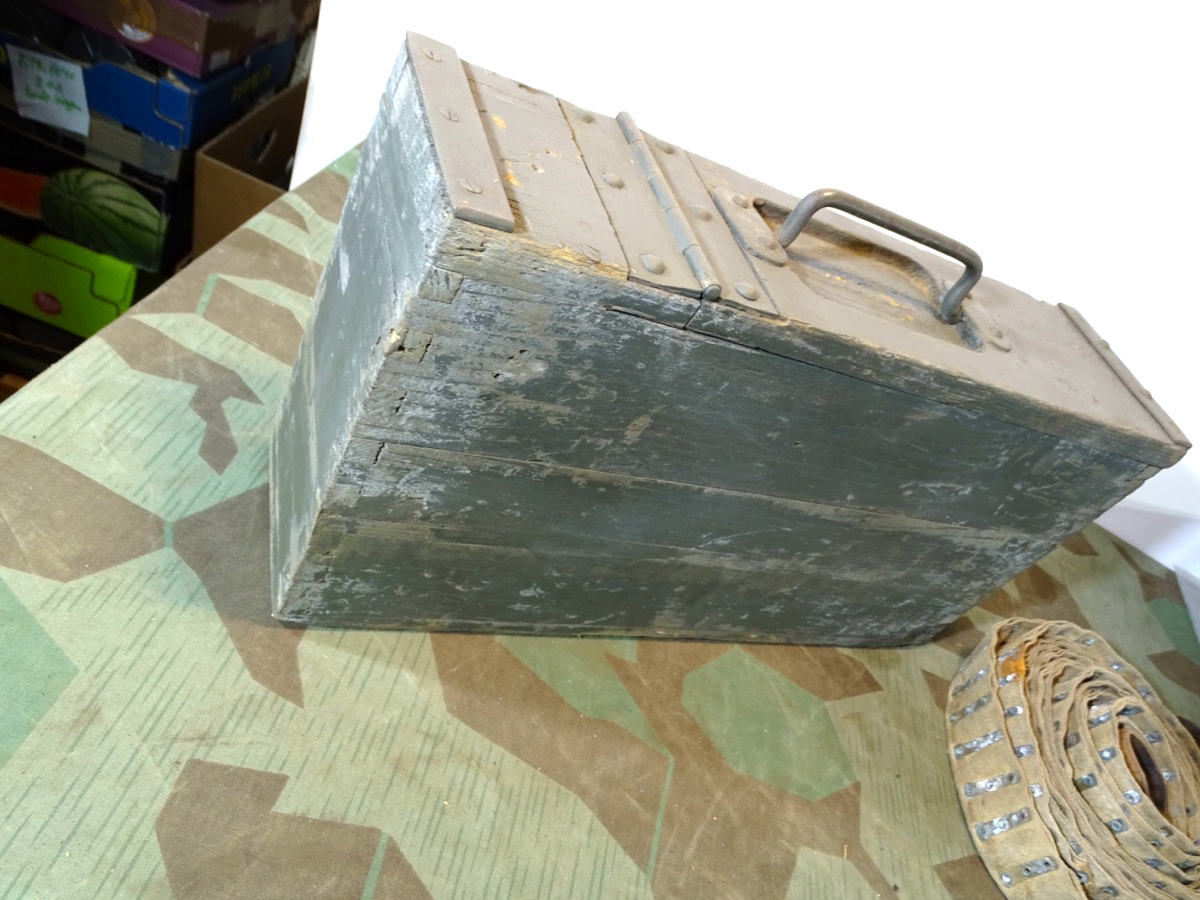 Holz Patronenkasten / Gurtkasten MG Schwarzlose mit Gurt, 1. Weltkrieg