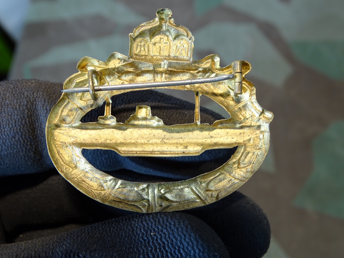Produktinformationen "Kaiserreich - U-Boot Kriegsabzeichen 1918, Buntmetall, vergoldet, hohl geprägt"