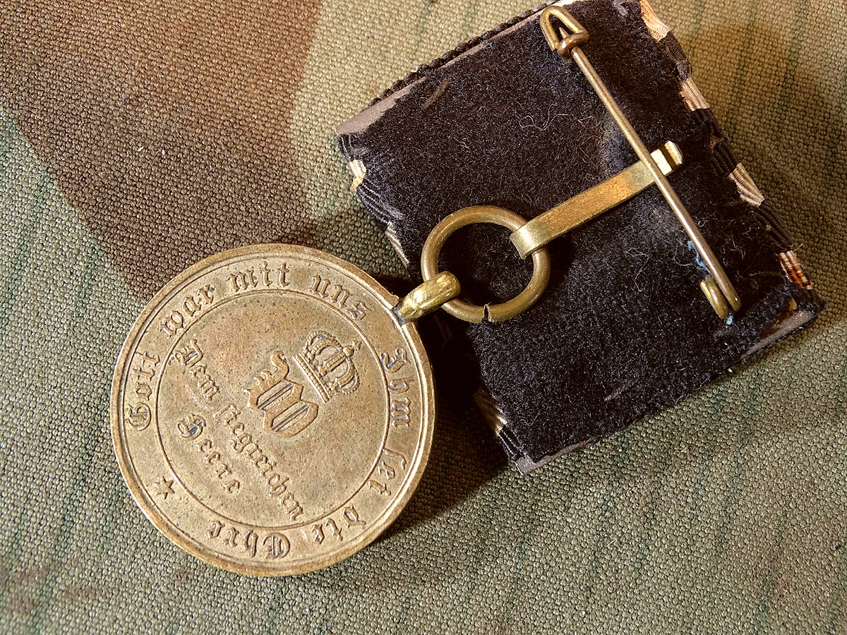 Kriegsdenkmünze für Kämpfer 1870-1871 für Kämpfer an Ordensspange. Auszeichnung für alle Teilnehmer des Krieges 1870-1871, die an Gefechten teilnahmen oder in der Kriegszeit die Grenze zu Frankreich überschritten hatten. Zustand siehe Fotos.