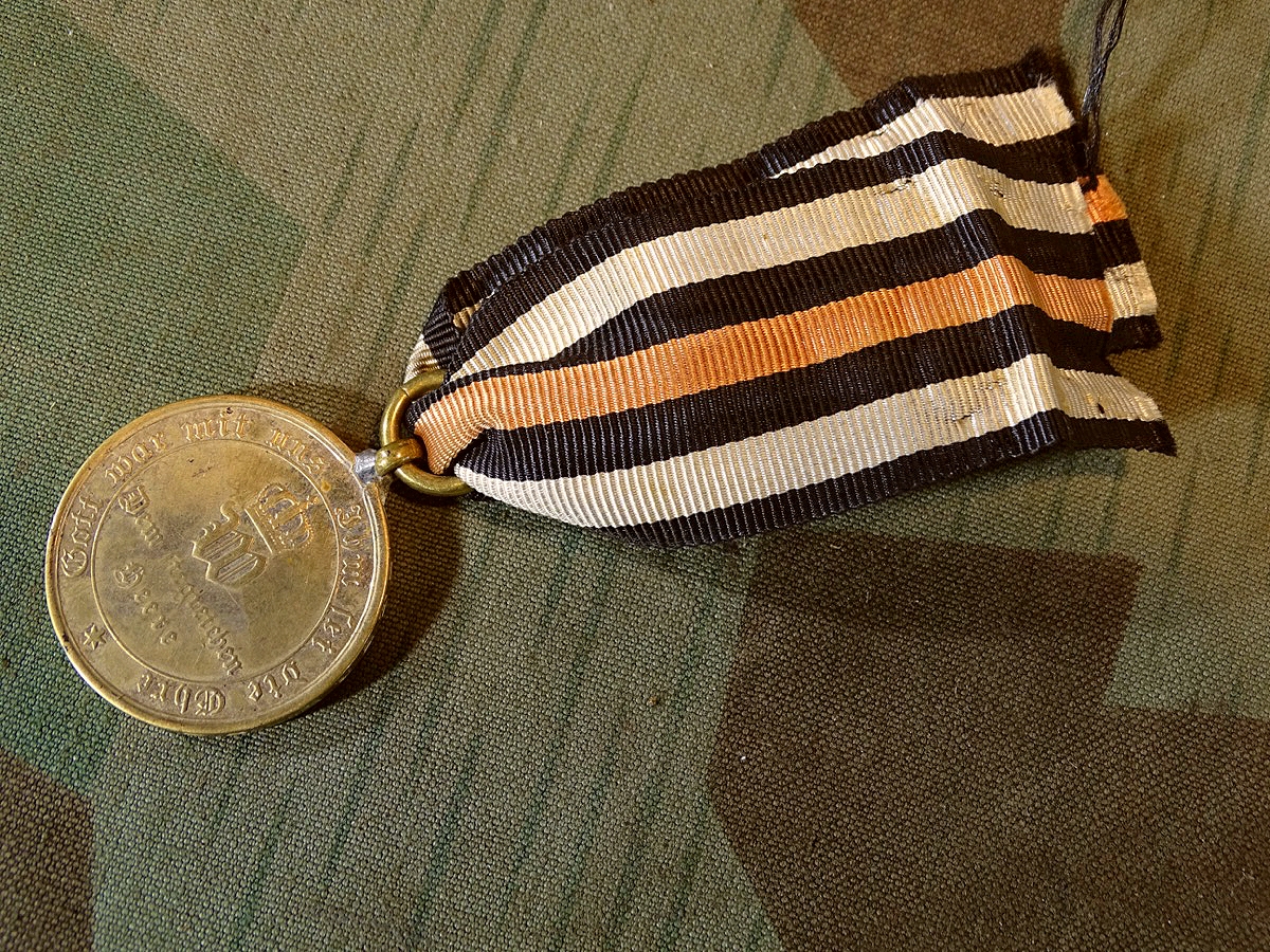 Produktinformationen "Kriegsdenkmünze 1870/71, Buntmetall. Aus erobertem Geschütz mit Band"