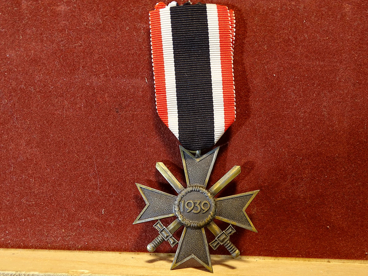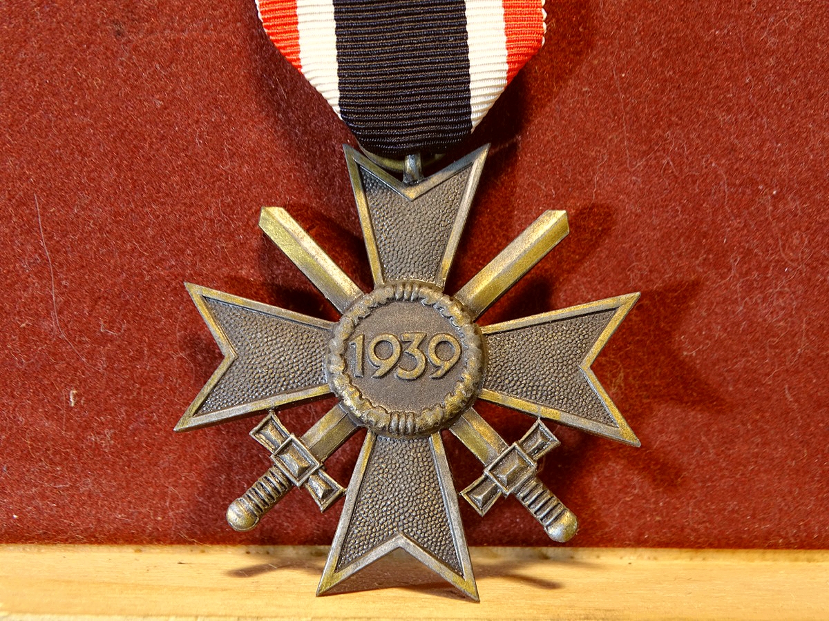 Produktinformationen "Kriegsverdienstkreuz 1939 mit Schwertern, Feinzink, o. Hst. Mit Bandabschnitt"
