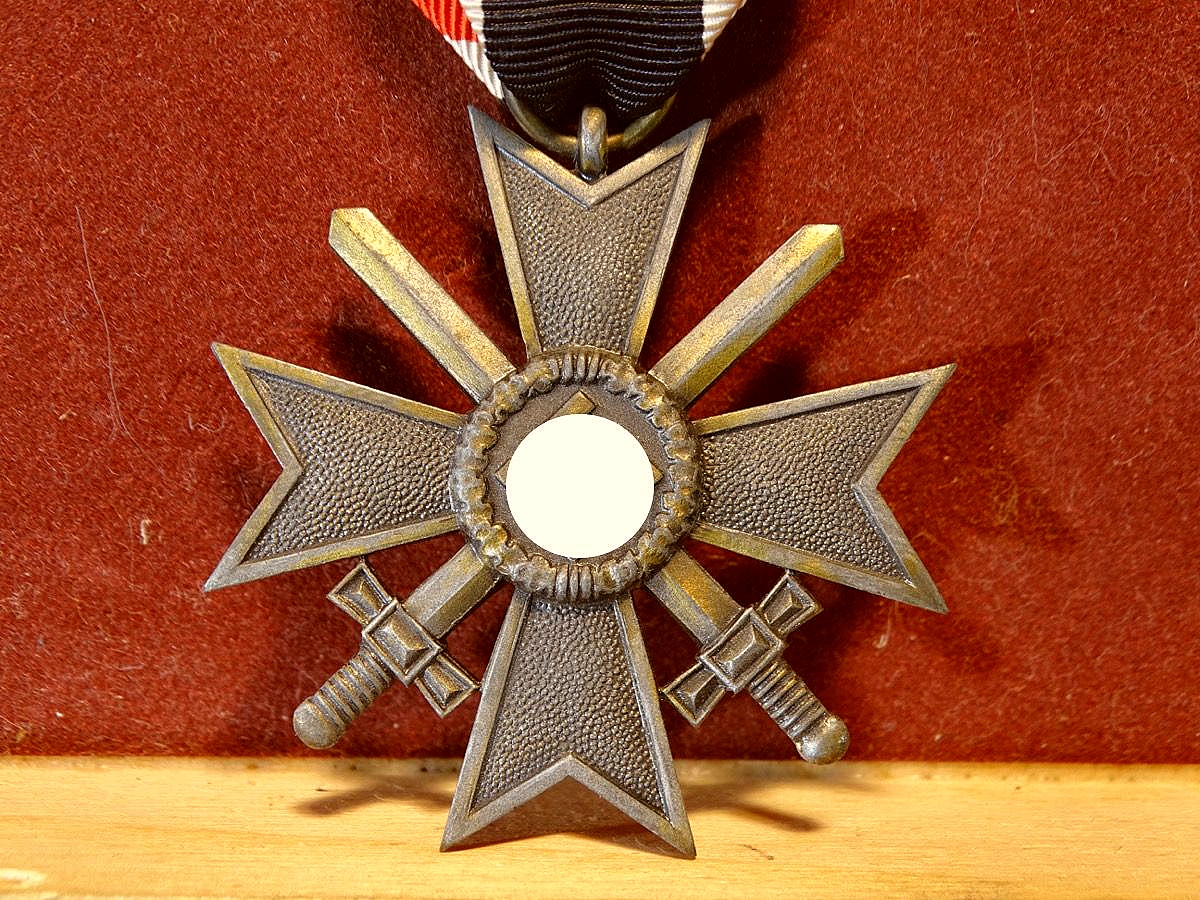 Kriegsverdienstkreuz 1939 mit Schwertern, Feinzink, o. Hst. Mit Bandabschnitt