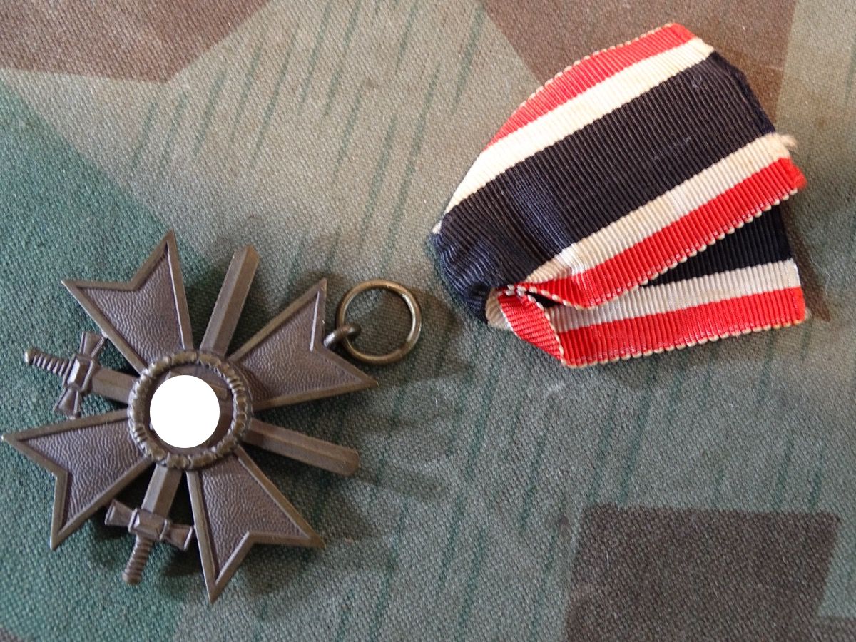 Produktinformationen "Kriegsverdienstkreuz 2. Klasse 1939 mit Schwertern, Buntmetall, Zustand 1-, Hst. : 127, mit Band"