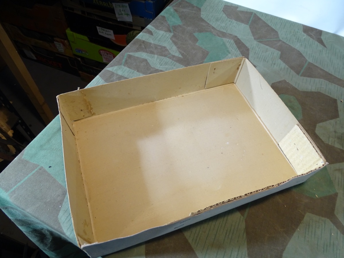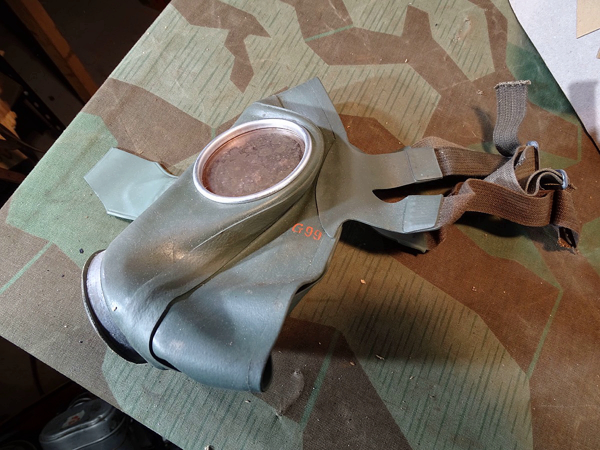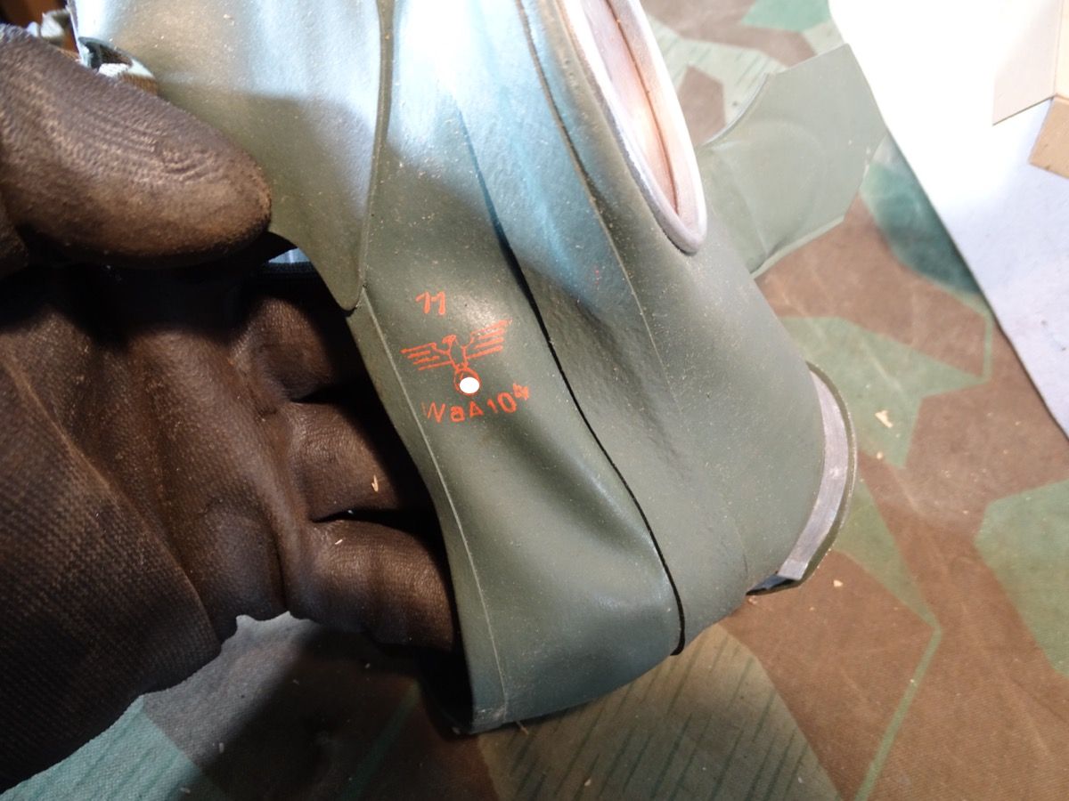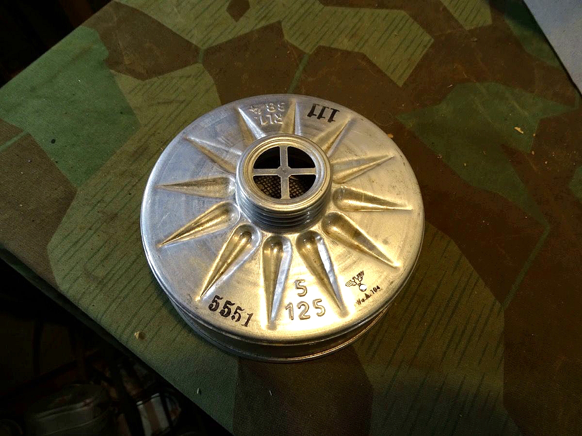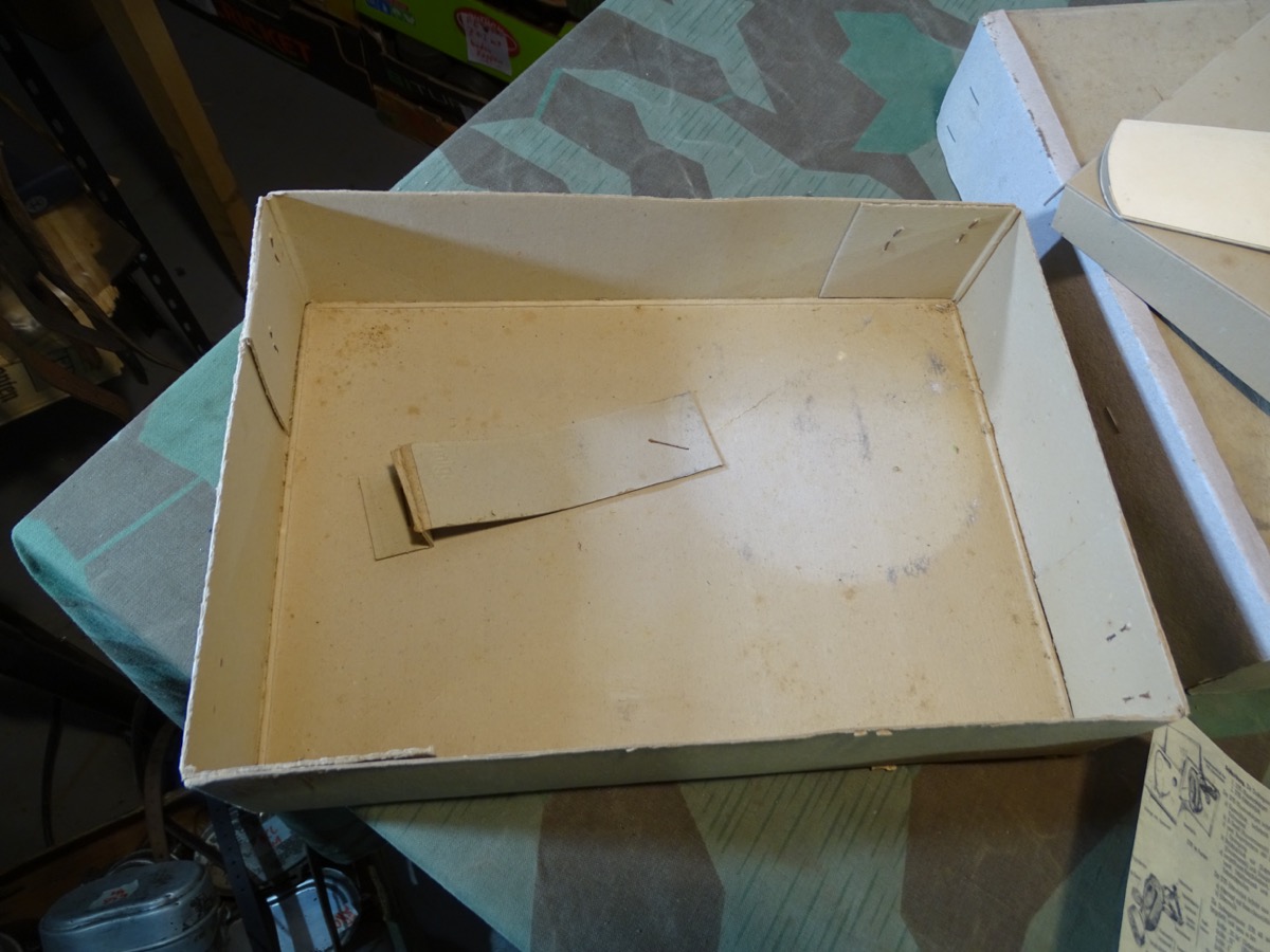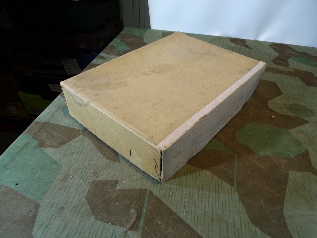Luftschutz Deutsches Reich, Volksgasmaske in Pappkarton, mit Gebrauchsanweisung. orangem Hinweiszettel zum aufsetzen und Filter. Spätes Modell DM 40 "M" ( Für Männer) in grün mit Gummiberiemung. Maske und Filter sind schön mit Waa Adler und HK und anderen Markierungen gestempelt. Sehr schön erhaltener Filter. Karton mit Deckelprägung VM M und Reichsluftschutz Stempel. Seitlich eine Schadstelle im Karton, diese Zeitgenössich mit Pappe aus der Kriegszeit repariert worden. Sie erhalten genau das Stück vom Foto.